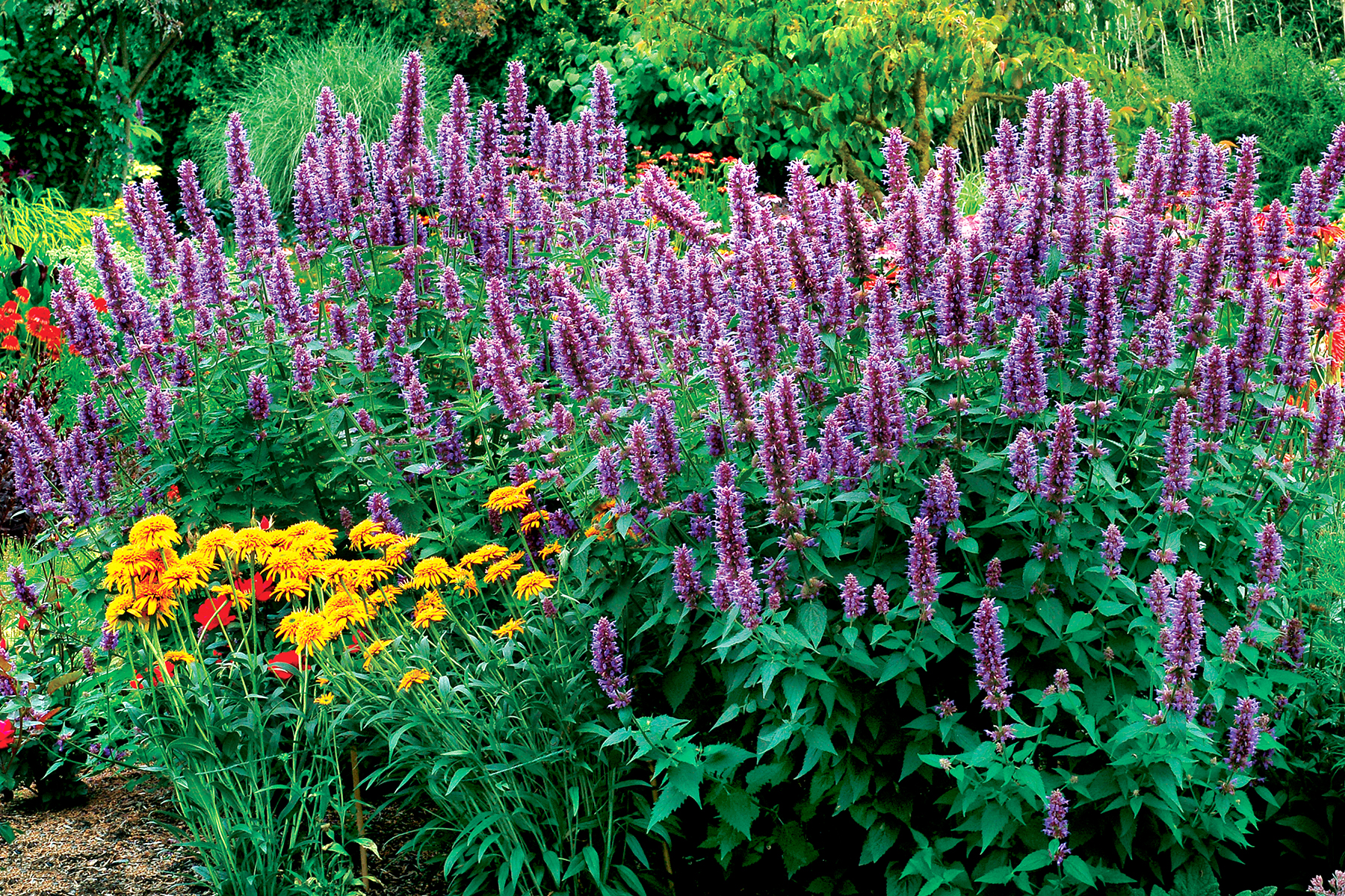 A tender perennial with aromatic leaves and colorful flower spikes all summer long. While traditional varieties have blue or purple colored flowers, newer varieties feature bold colors such as red and orange. In warm climates, it comes back consistently each year. In cold climates is self-sows readily making it an annual addition to your garden. The flowers are attractive to hummingbirds, butterflies and bees, while the anise-flavored leaves can be used in teas and cooking.