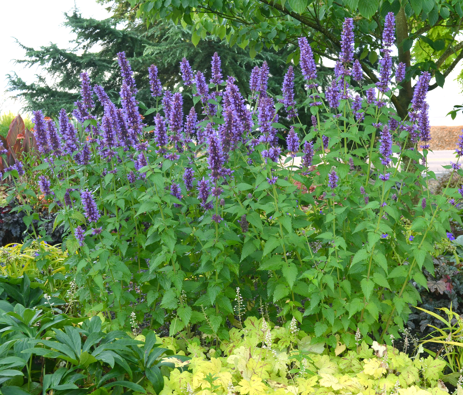 Unlike any other Agastache, this beauty produces luxurious, deep violet-blue flower spikes held over ultra-green foliage. The flower spikes are long, wide and extremely showy. It's a great perennial color spot for summer bloom. It's drought tolerant once established and attracts hummingbirds as well as butterflies and bees. Won the “Too Good to Wait Performer” award at the 2013 Colorado State Perennial Trials.