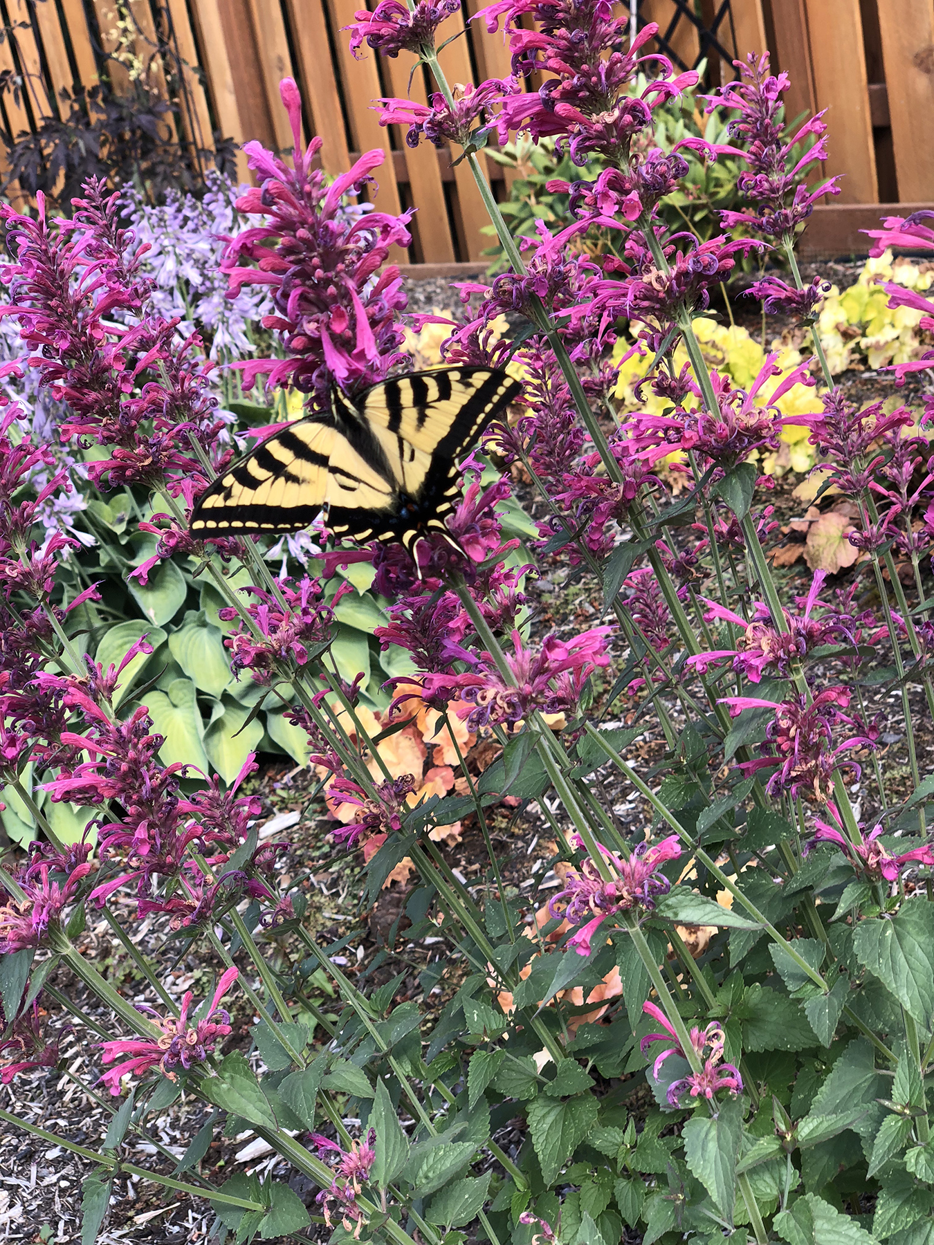 Growing Agastache in the butterfly garden not only attracts those beautiful insects, but pollinators and hummingbirds. Deer and rabbits do not seem to enjoy Agastache, which makes it ideal for the woodland garden.