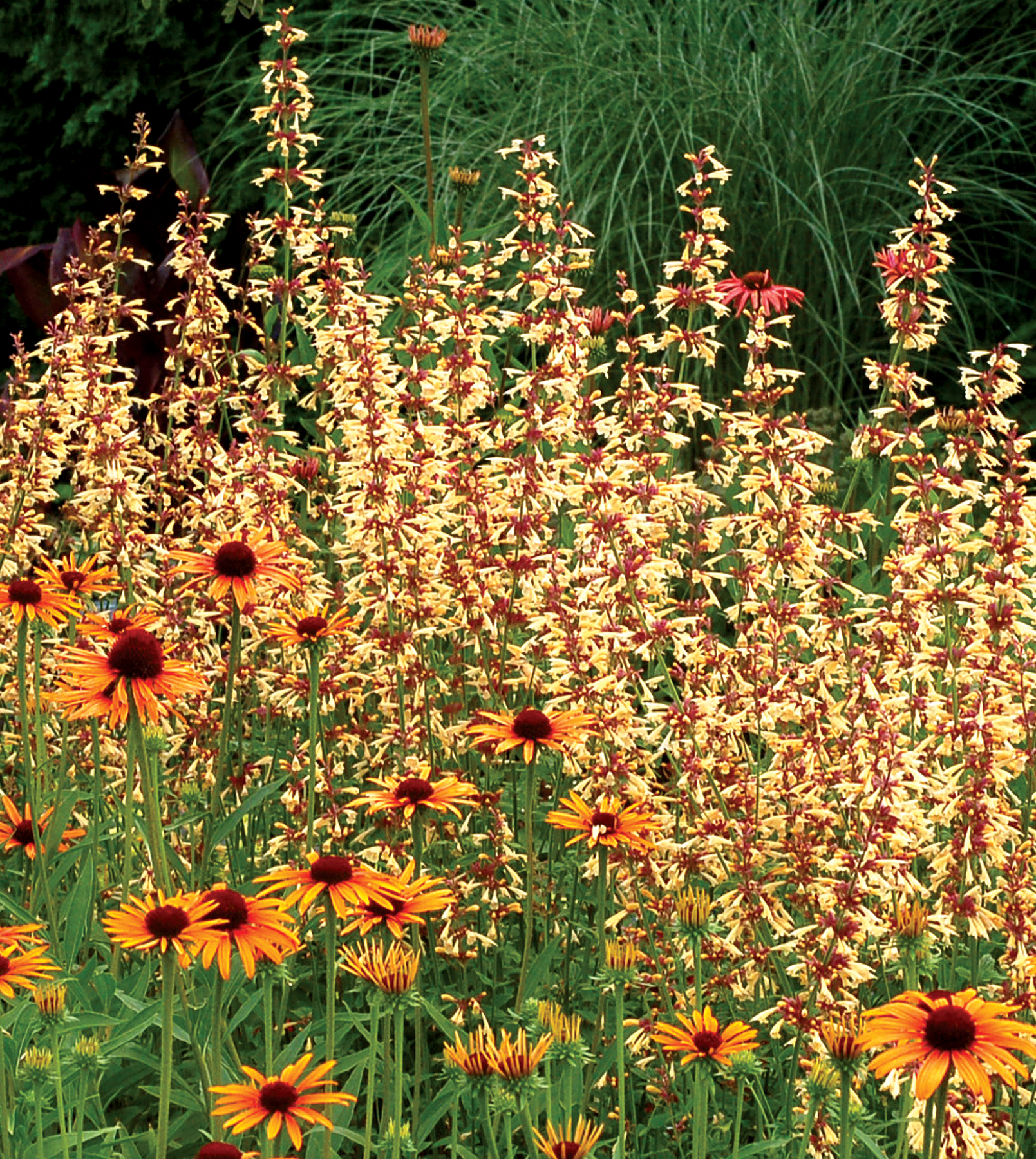 A tender perennial with aromatic leaves and colorful flower spikes all summer long. While traditional varieties have blue or purple colored flowers, newer varieties feature bold colors such as red and orange. In warm climates, it comes back consistently each year. In cold climates is self-sows readily making it an annual addition to your garden. The flowers are attractive to hummingbirds, butterflies and bees, while the anise-flavored leaves can be used in teas and cooking.
