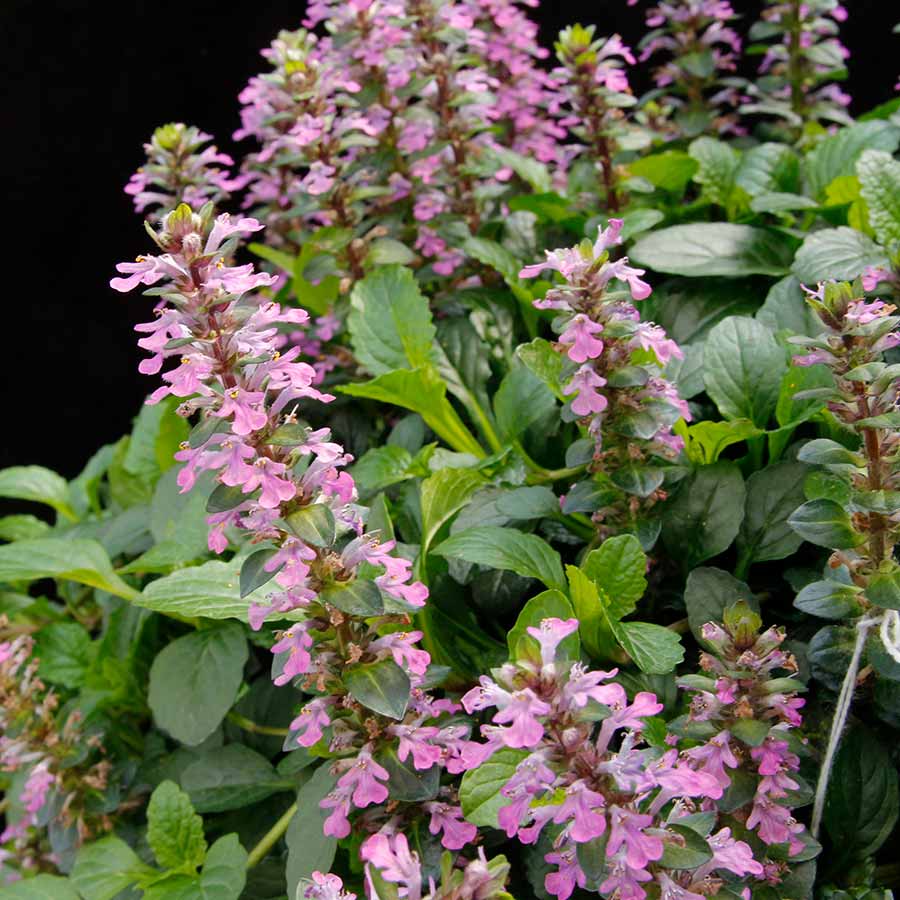 A matched companion to Ajuga NOVA® ‘White’, NOVA® ‘Pink’ has the same mat forming ability in the garden and landscape. Deep green foliage that sometimes has a purple flush to it, shows off the pretty bright pink and violet flowers. Beautiful when companion planted with spring flowering bulbs underneath, like crocus, muscari and narcissus.