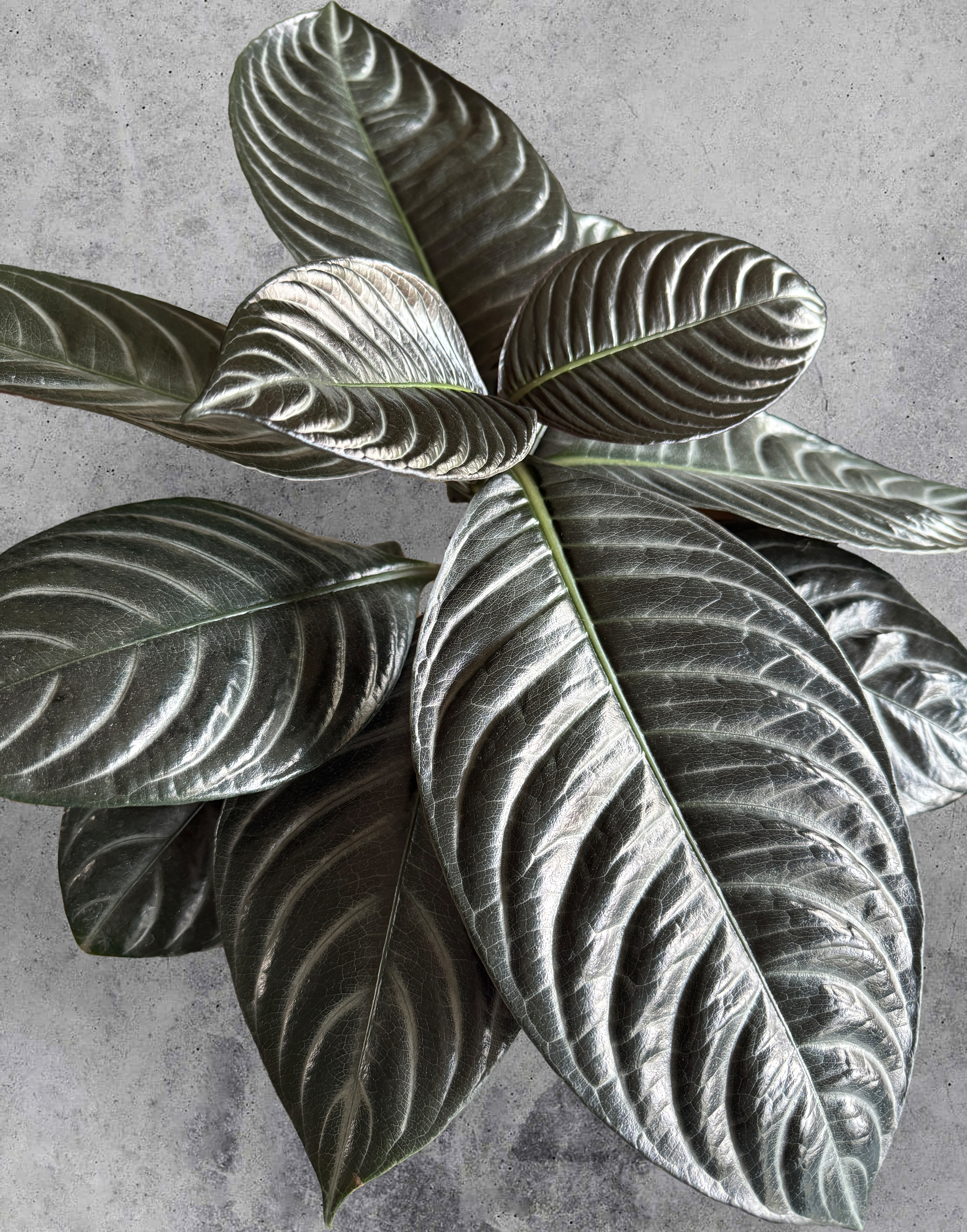 This sensational, new houseplant introduction is a first for the North American market via virus free tissue culture. Dramatic foliage is a deep green-black with a gossamer veil that shows on the youngest foliage. The undeniable star of the show is the flaming torch-like flower spike, thus the name ‘Fuego’. Easy to grow in average greenhouse conditions, this unusual beauty can be grown with most foliage crops. A special plant the requires no special treatment.