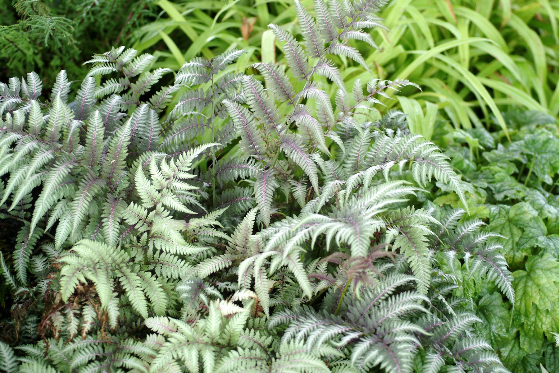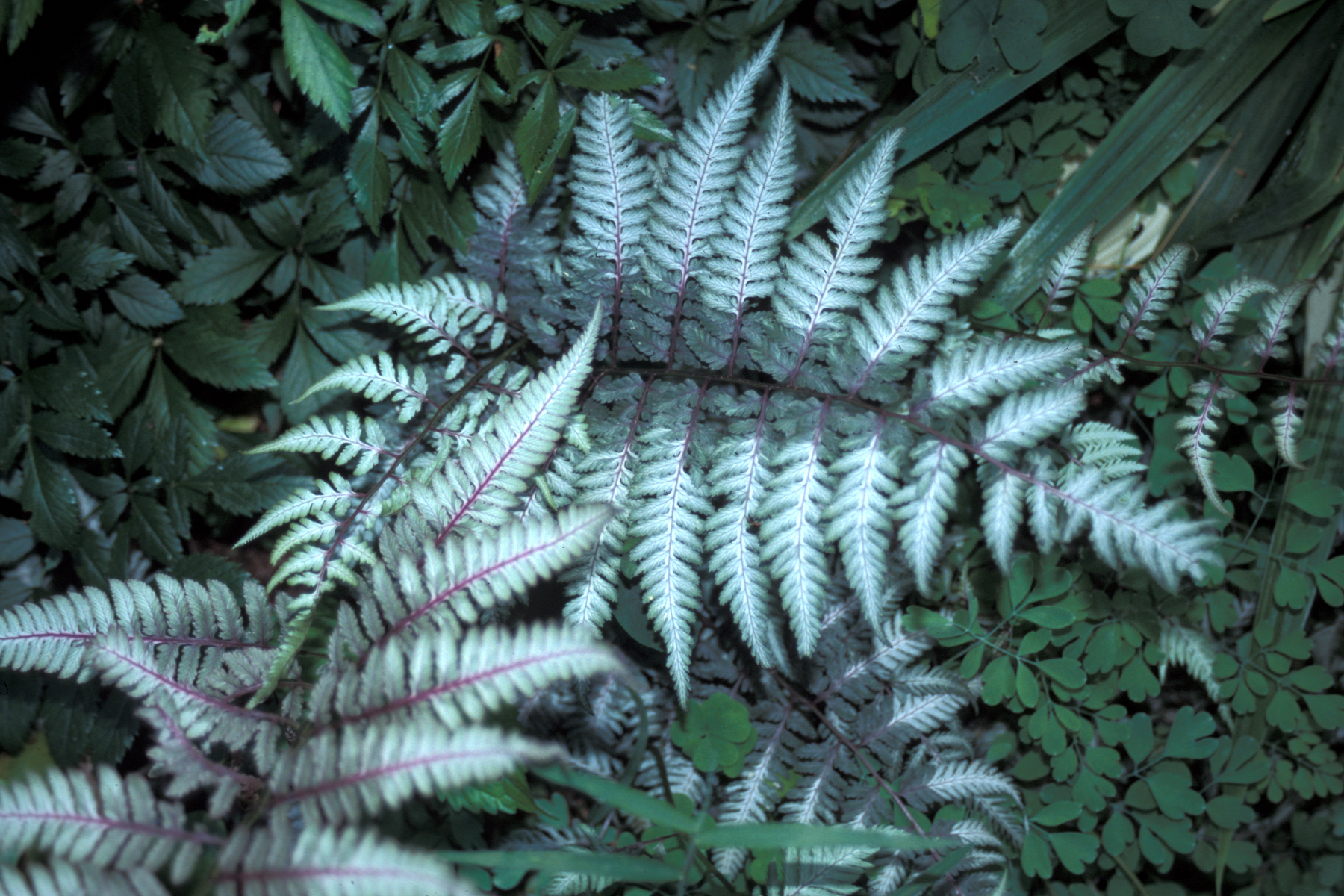 This fern heralds the spring with broad silver leaves traced and flushed with wine red down the center. This choice cultivar has a striking, upright form that adds elegance to the woodland border. Attains the best color in light to medium shade.