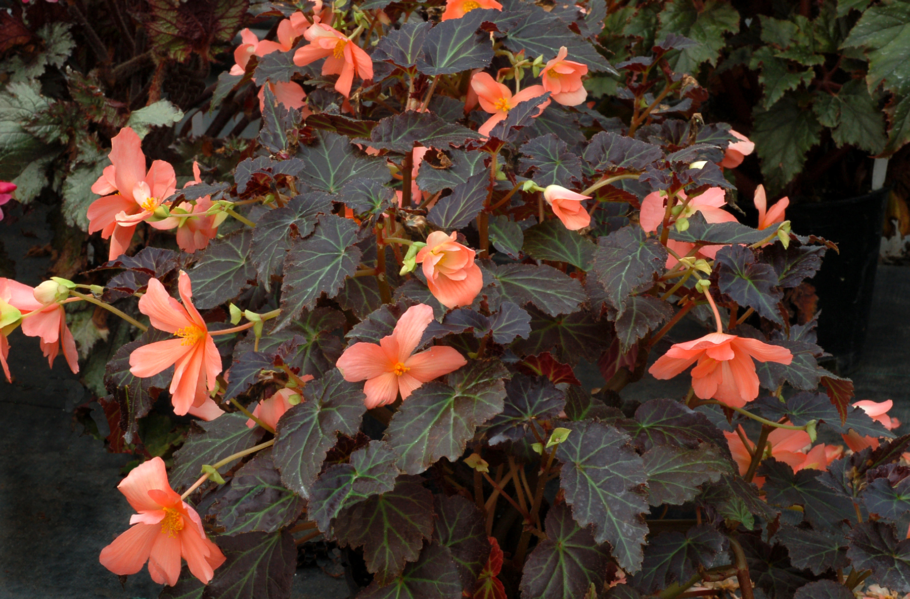 | How Different? | Only upright begonia with dark brown foliage with large, salmon-orange flowers. |