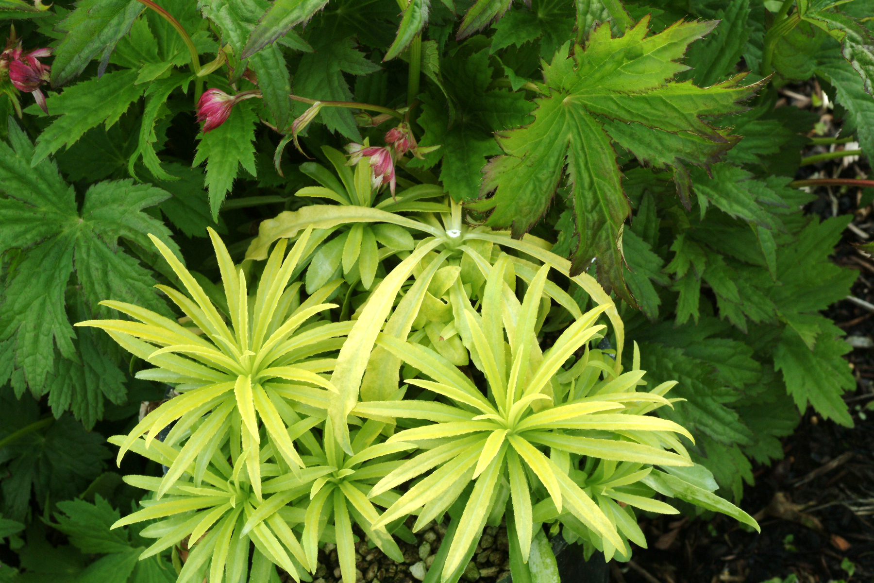 | How Different? | Gold foliage rather than green, white flowers with a blue tinge. |