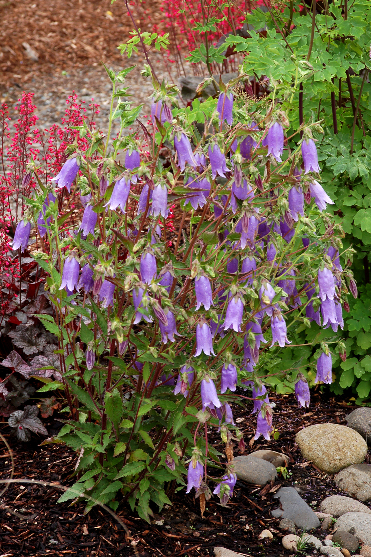 The longest blooming Campanula we've ever seen. Masses of large, silvery blue bells on 2 foot, upright stems… all spring, summer and fall! A clumping habit that doesn't spread or reseed. This plant gets better each year. Here's the “cure” for the summertime blues!