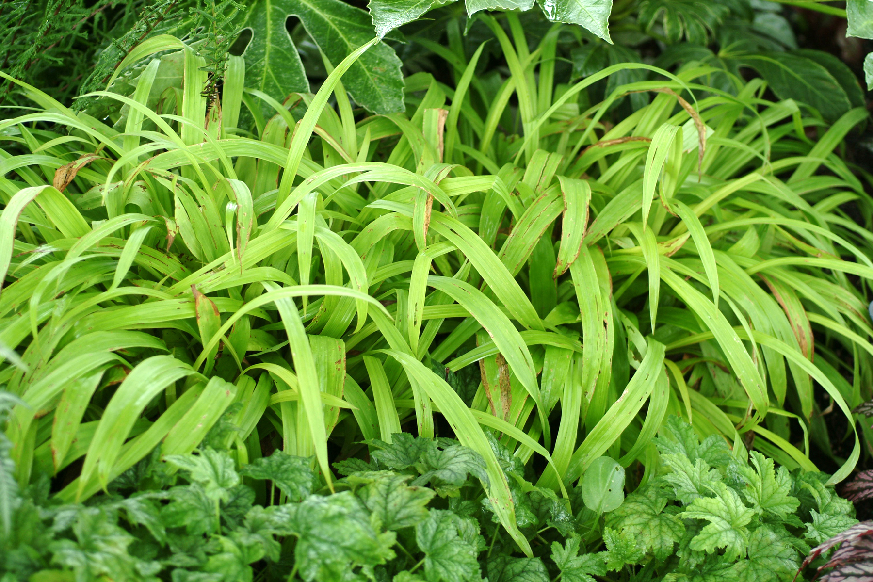 The only gold C. siderosticha on the market that holds its gold all summer. Its' bright lemon swords will illuminate the garden. These golden clumps glow in moderate shade with even moisture. Striking in borders and containers. This clumping, deciduous sedge combines well with Hosta and Heuchera.
