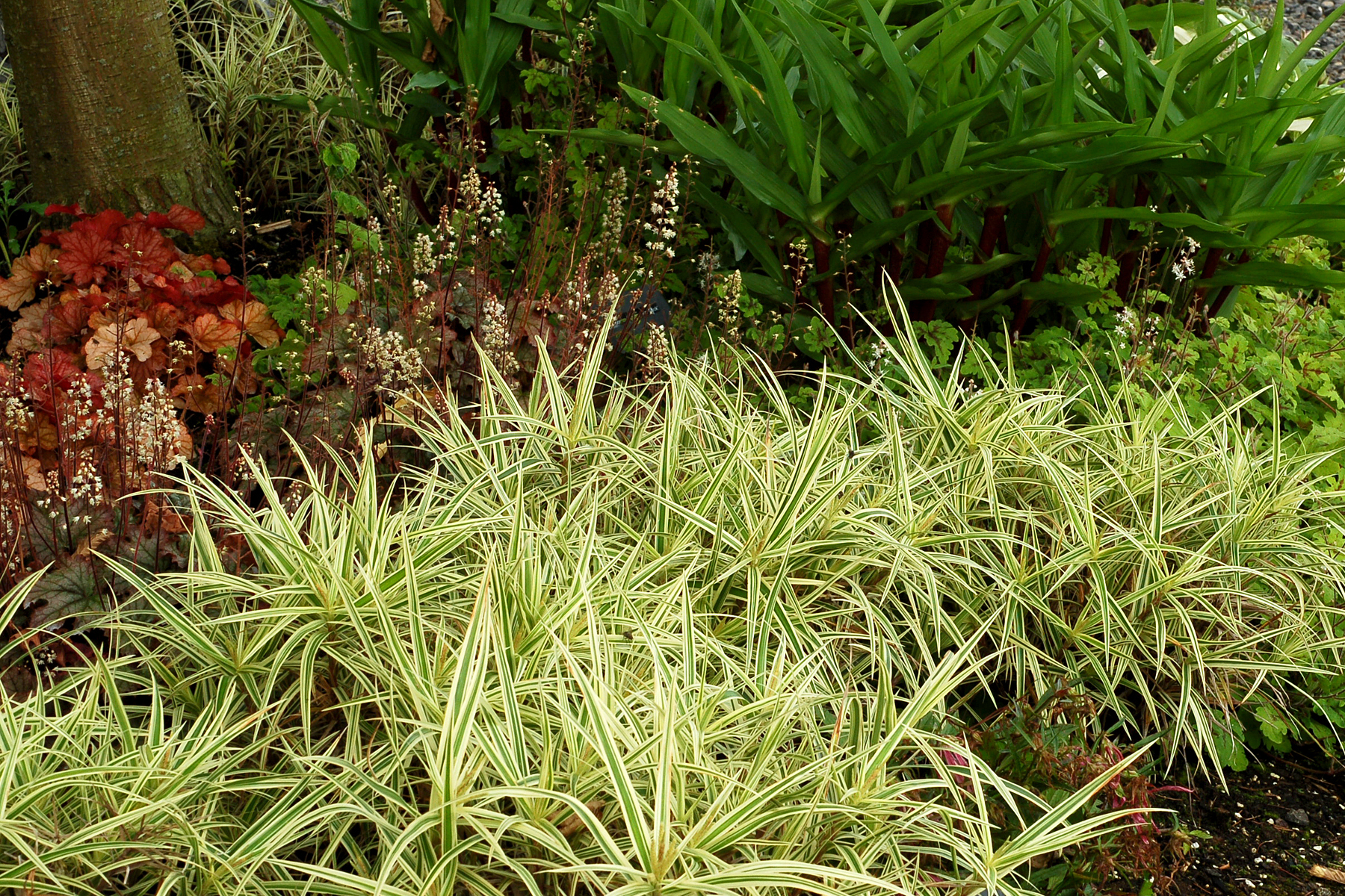 | How Different? | 2/3 shorter than Carex 'Sparkler' with a more compact habit and shorter, narrower variegated leaves. |