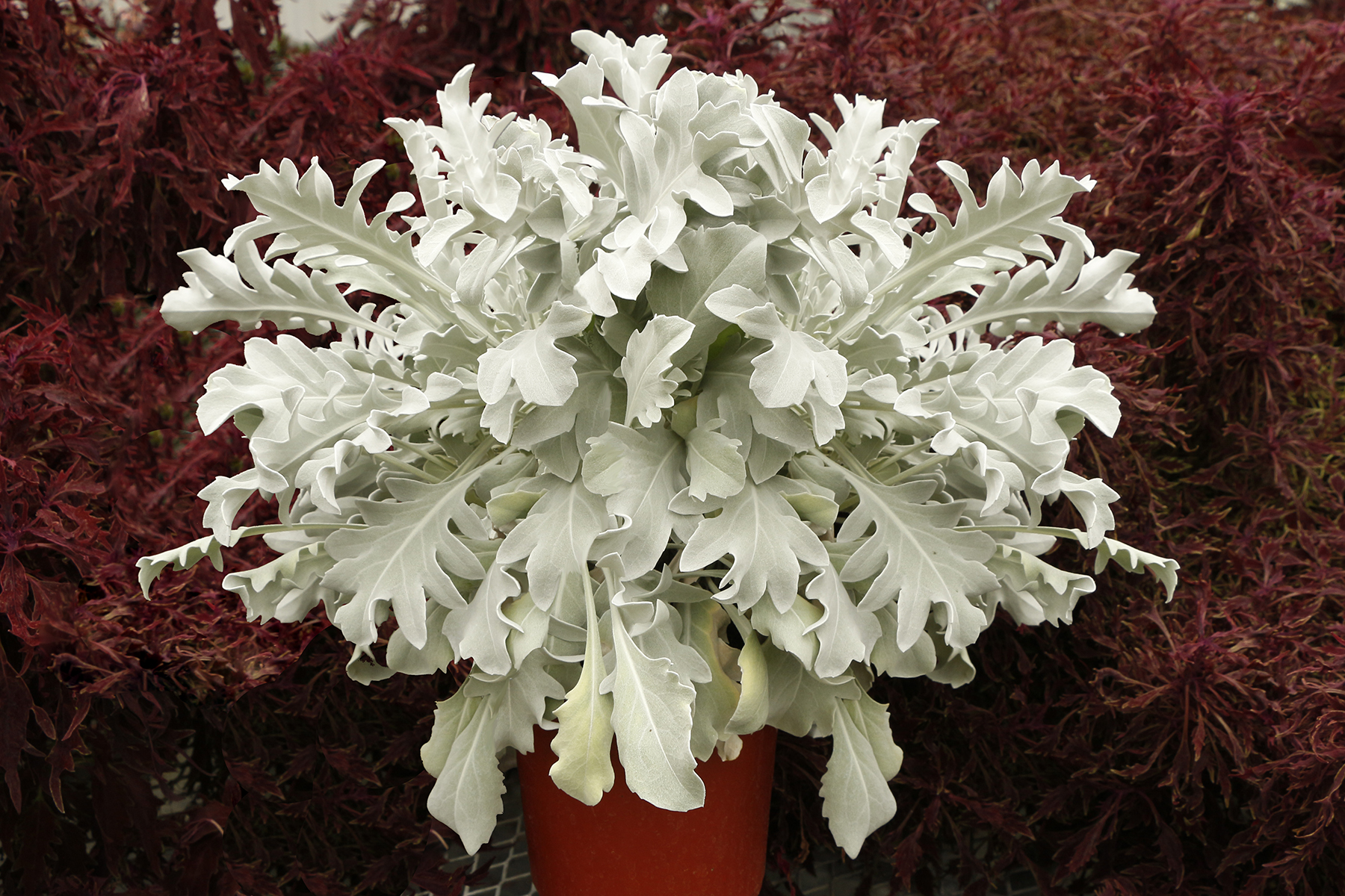 2020 – Best New Variety Winner at the Colorado State University Flower Trial Garden. Large, velvety, white leaves contrast beautifully in mixed containers and summer borders. This tough annual loves full sun and grows into a well-branched, cushiony mound.