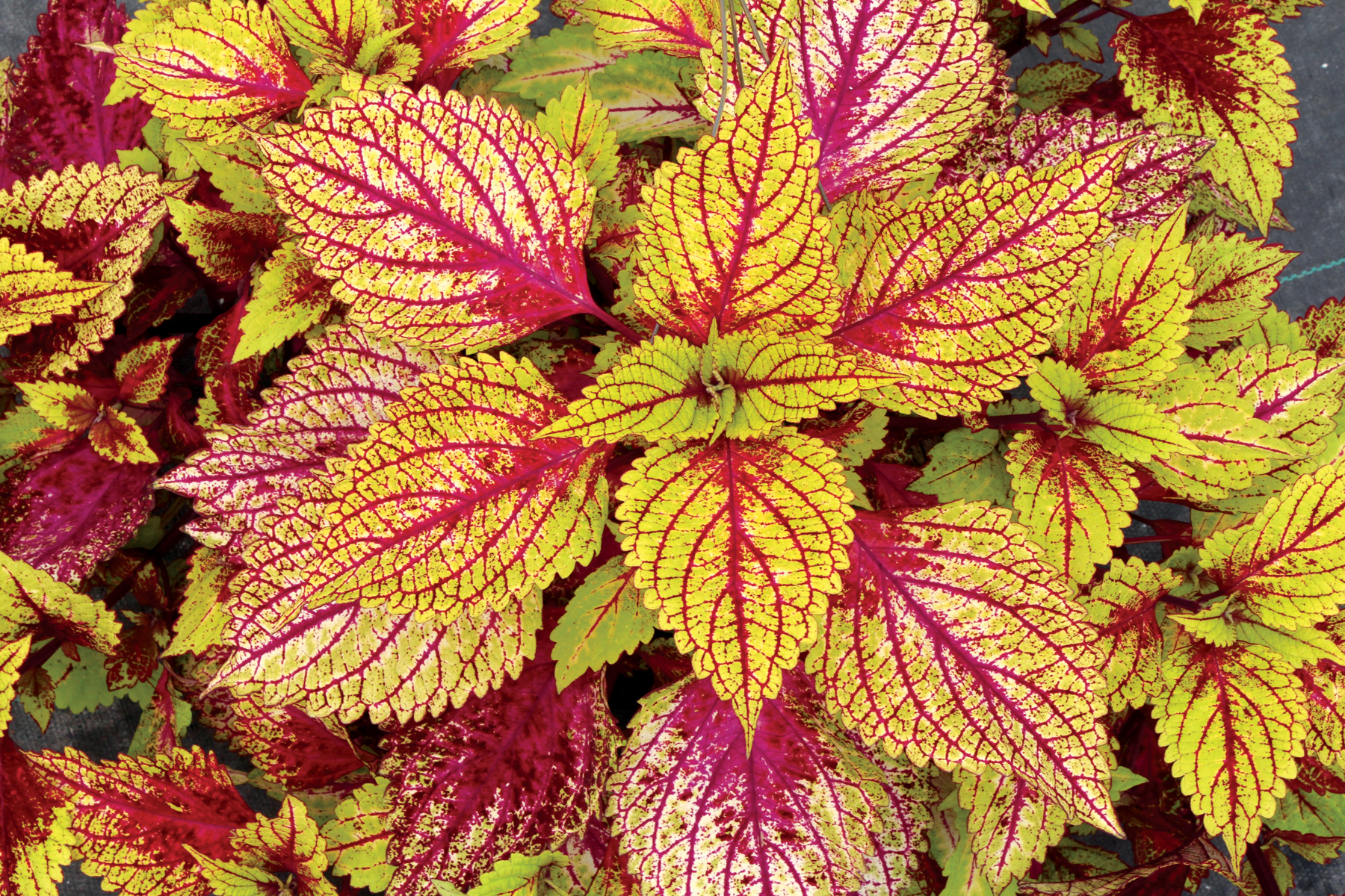Coleus COLOR CLOUDS™ 'Hottie' has lime green leaves that have magenta veins on young leaves. Older leaves become more and more magenta giving the plant a multicolored look. Pretty, posh and perfect! 'Hottie' forms an amazing, large, gorgeous basket fast; or use as a groundcover.