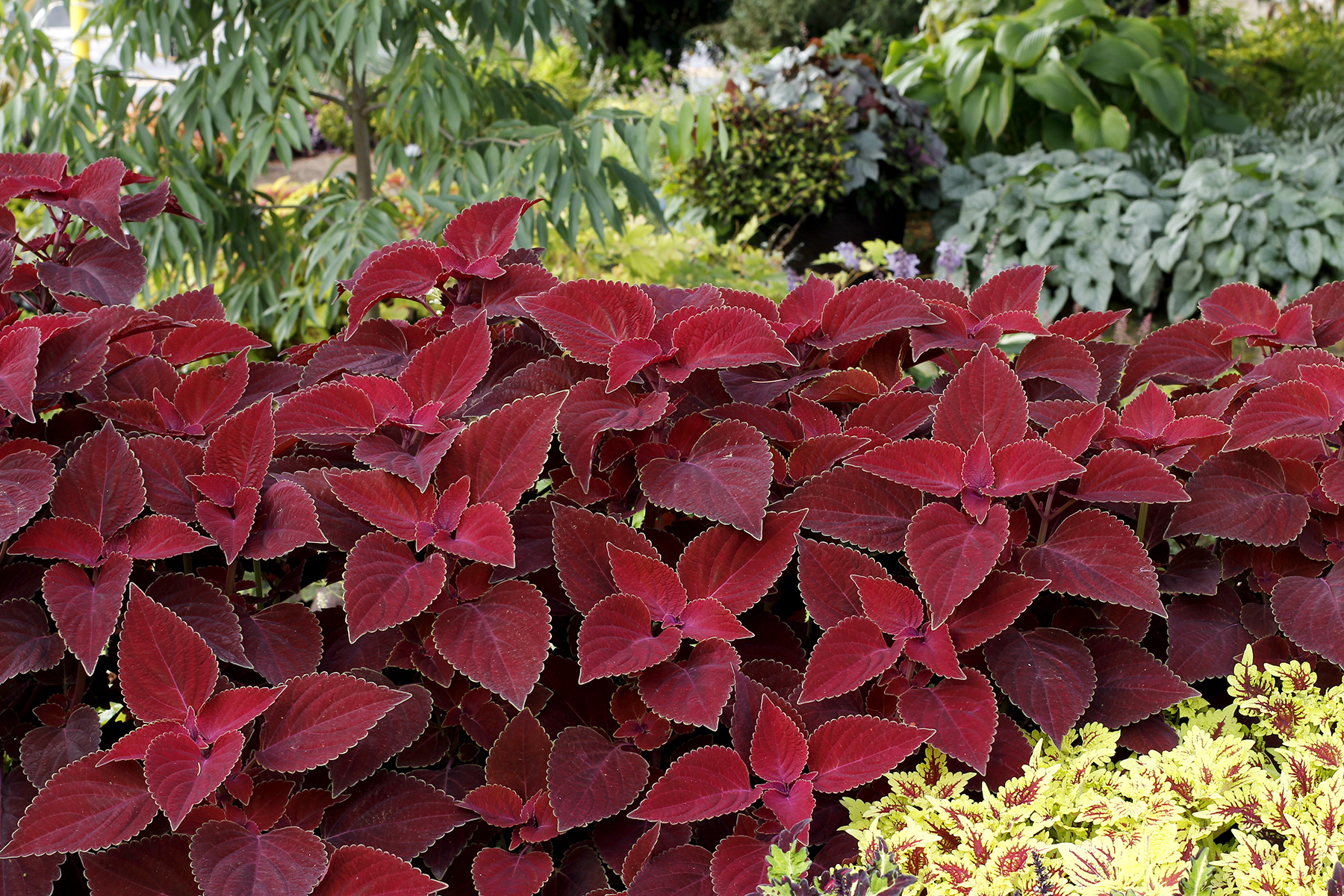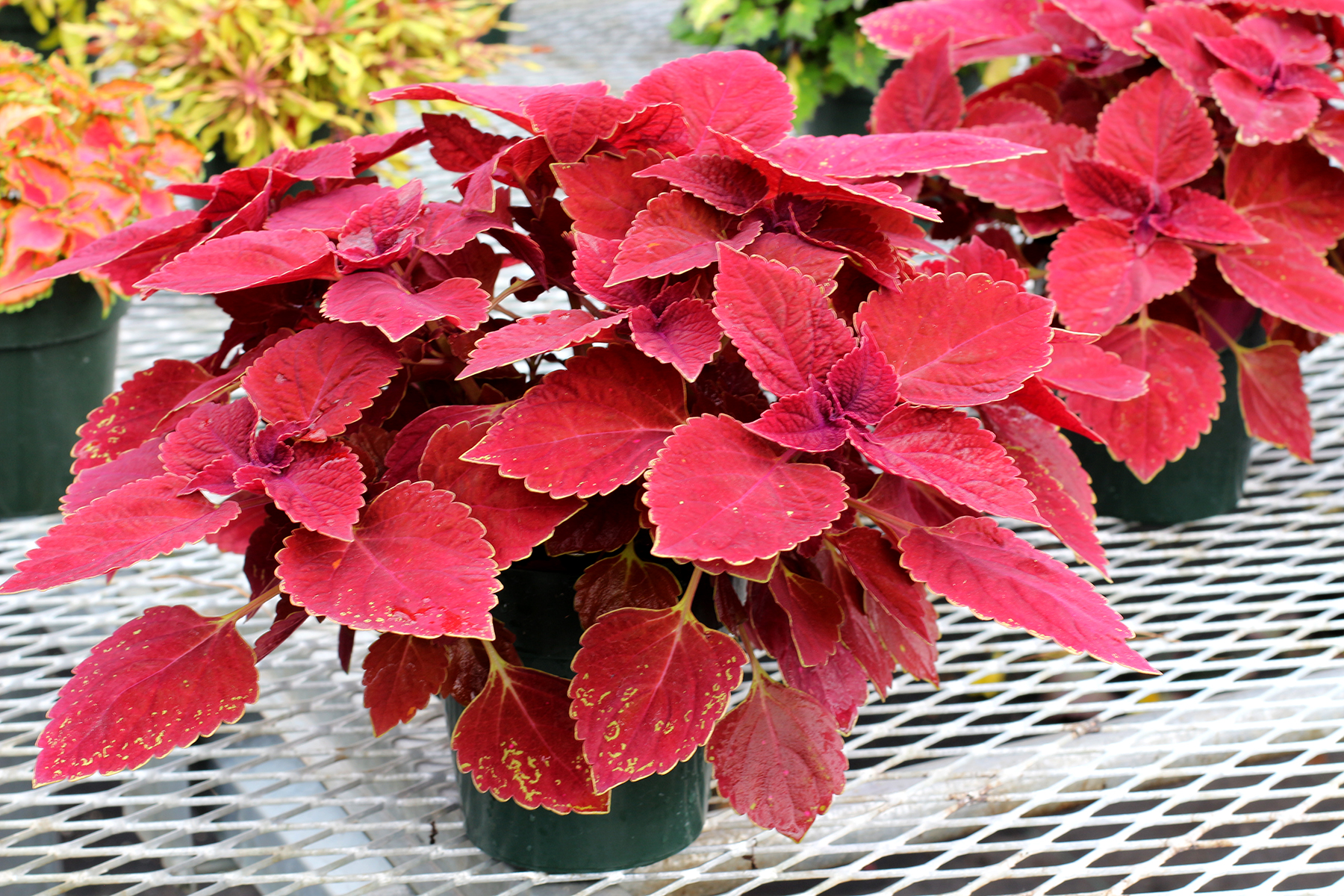 Large, luxurious foliage and a graceful habit make this Coleus “large and in charge”. Super charged vigor and a gorgeous, draping ability combine in this brilliant red foliaged plant. Great for hanging baskets, groundcovers and large mixed containers.