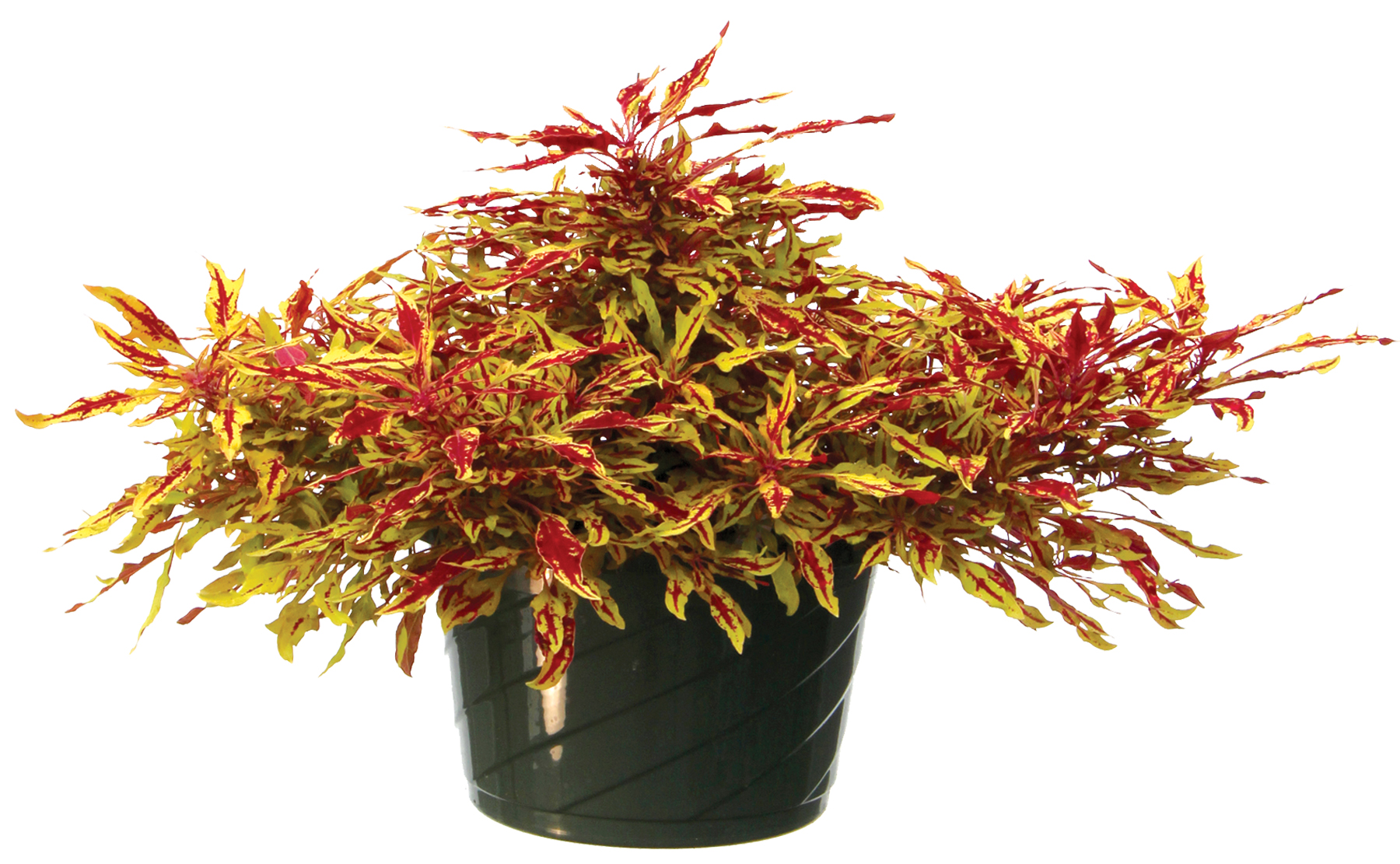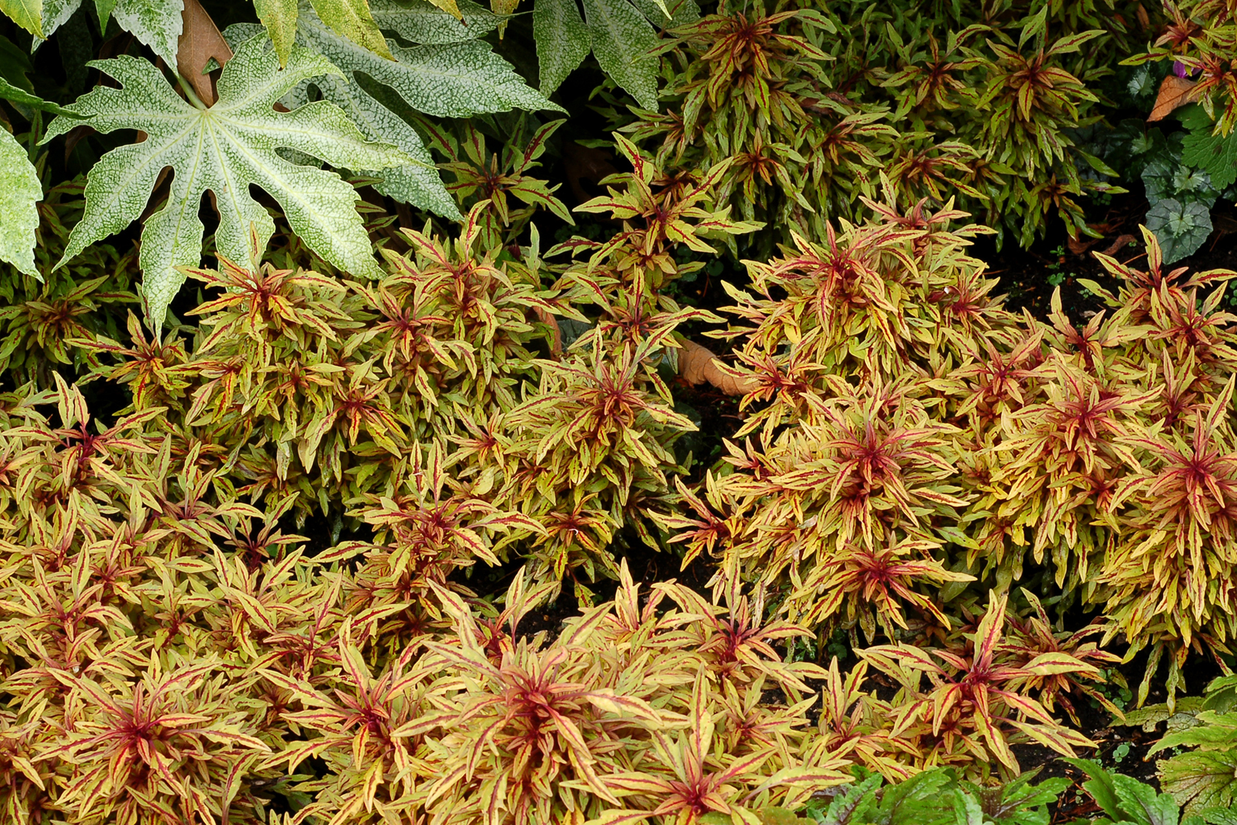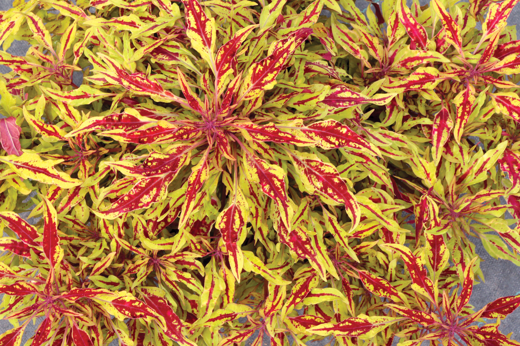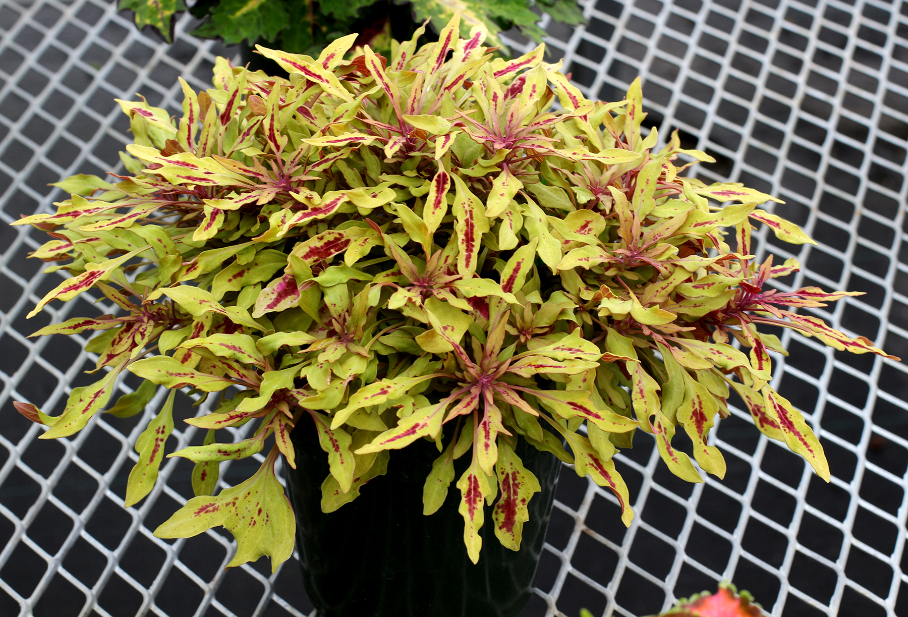 'Zooey' is a free spirited, very unique individual! Fantastic foliage that looks more like feathers than leaves; each marked differently. An unusual, lime-gold background is veined or splashed with a tart cherry-red in a casual fashion. HIPSTERS™ 'Zooey' defies convention and breaks all the rules.