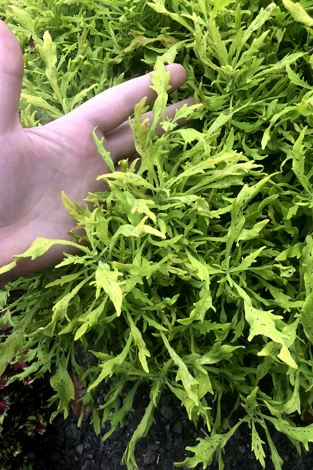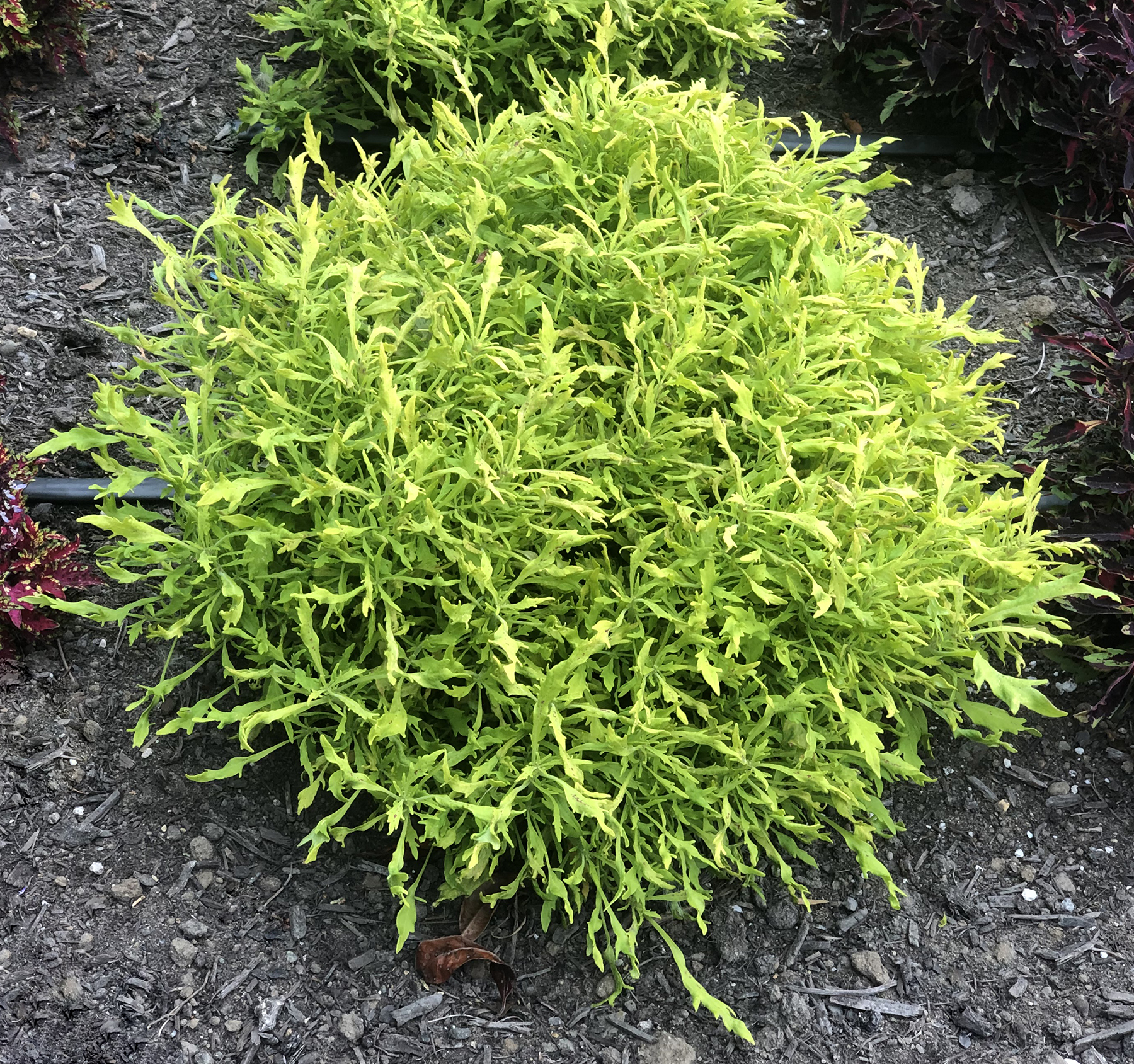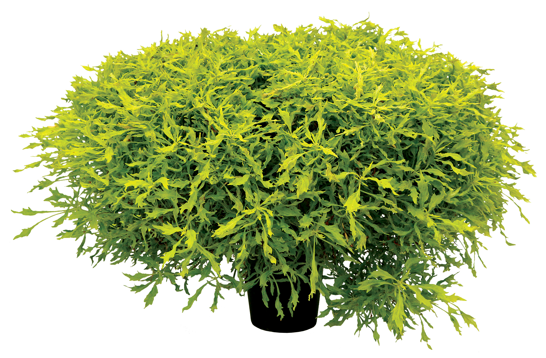 Finely cut, lime green foliage on a full size plant. Its tight, upright, and mounding habit gives great garden performance. Enjoy in combo pots or in the landscape. Use for a flash of lime in the garden. Self-branching, no PGRs recommended.
