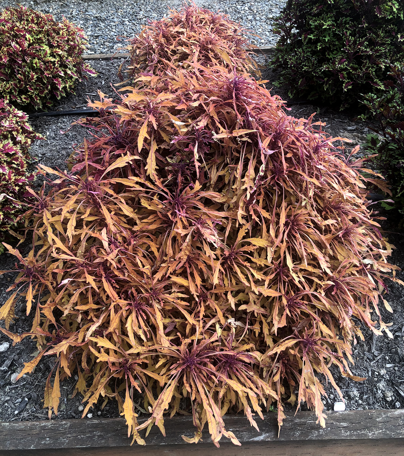 | How Different? | Upright mounding habit with lacy leaves colored peach and purple. Extremely unusual peach colored thread-like foliage in a dense habit. |