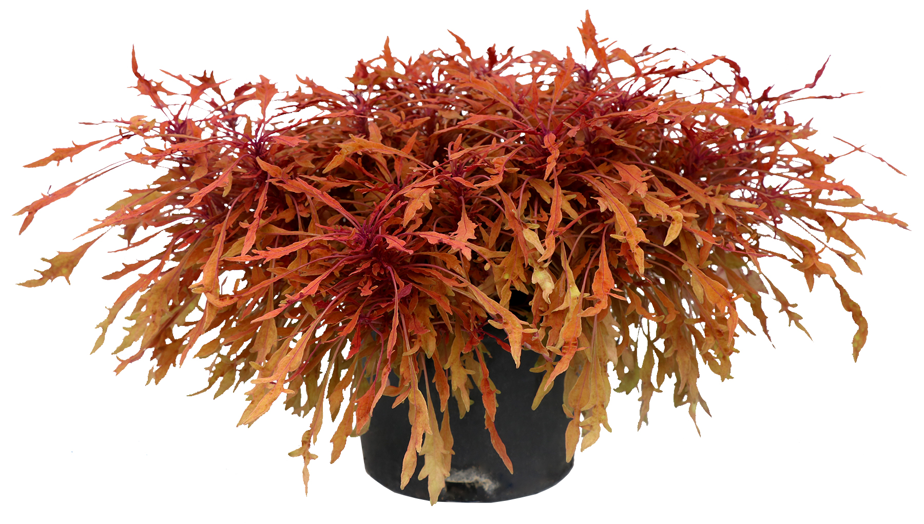 The dynamic, self-branching mound is covered with lovely peach and purple toned, lace-like leaves. The rounded, mounding habit is perfect for containers, hanging baskets, mid-height summer borders and mass plantings.