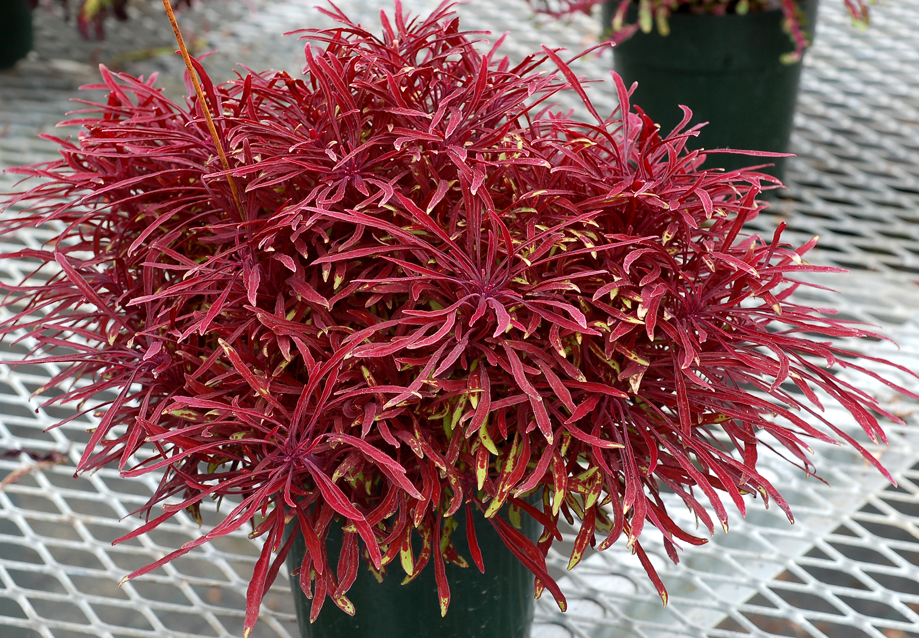 Feathery, burgundy-red leaves provide a soft and fluffy look to TERRA NOVA® 'Red Threads'. Upright and slightly spreading with dense foliage, this plant will be the perfect filler for containers, summer borders, and mass planting.