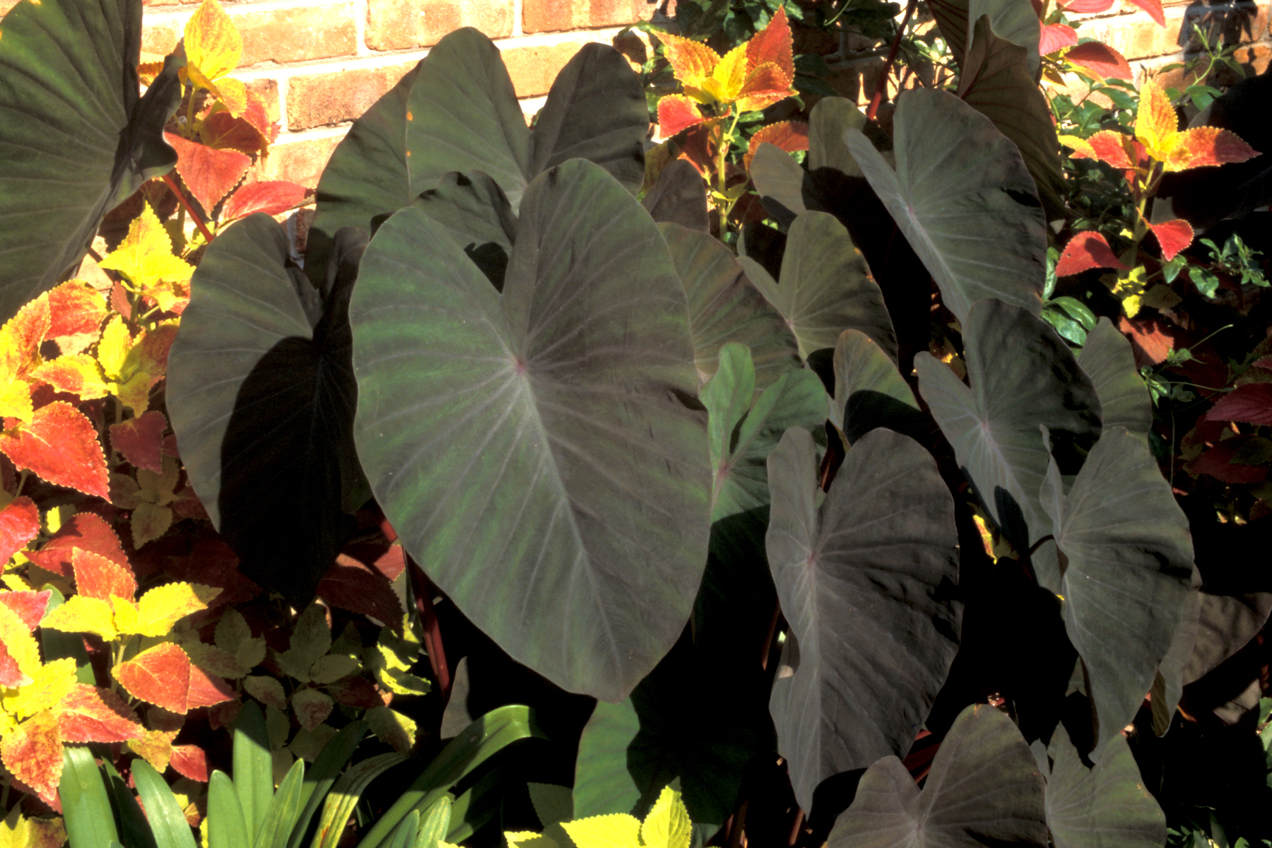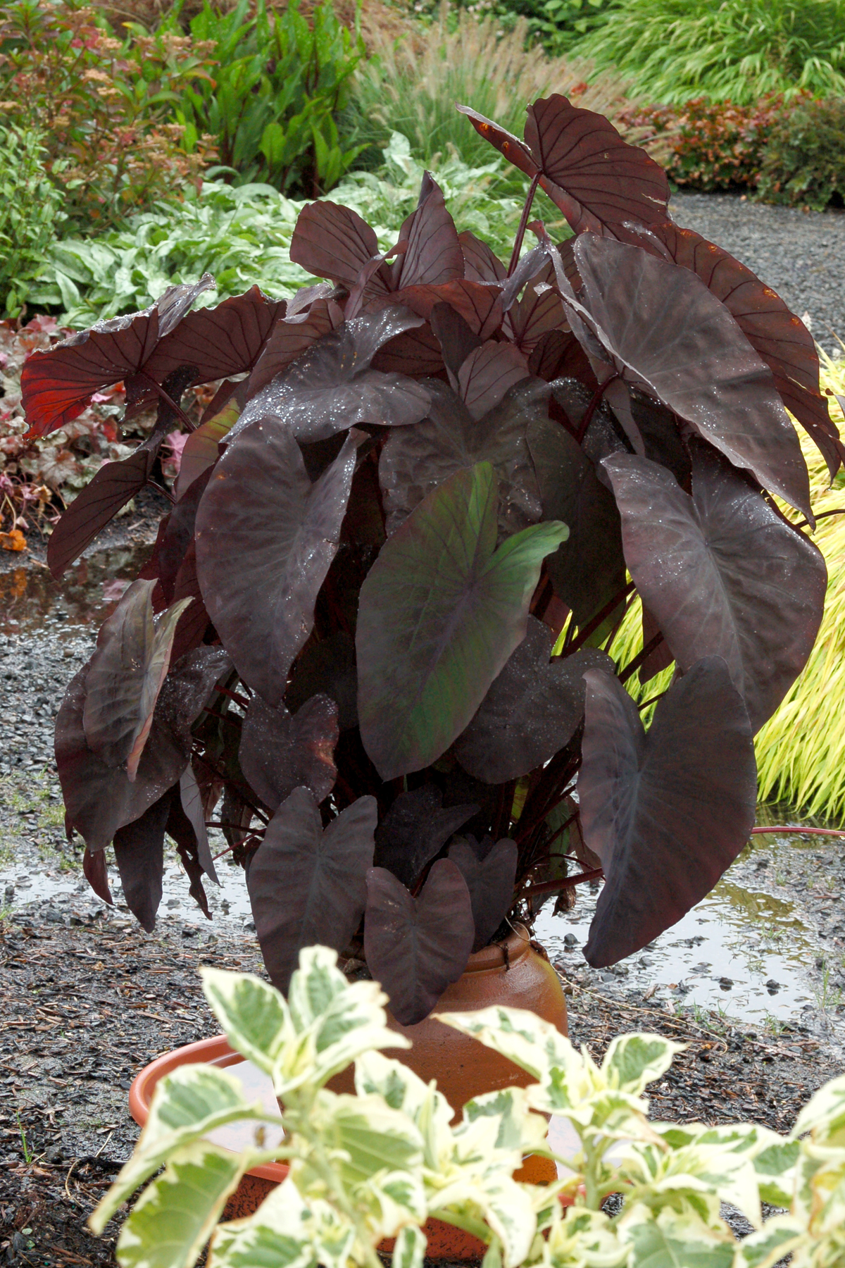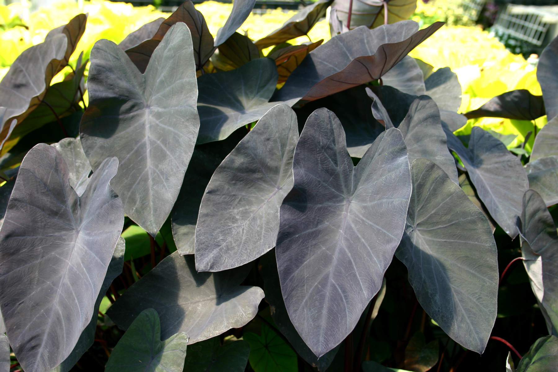 One of the few 'true blacks' of the plant world, this exotic form of Taro has amazed visitors. 'Black Magic' is tropical in appearance and very moisture loving, so it's great in or around ponds and it can be a major player in containerized plantings.