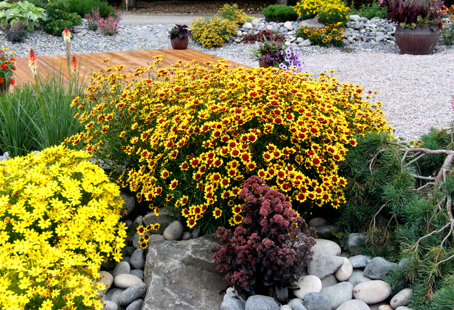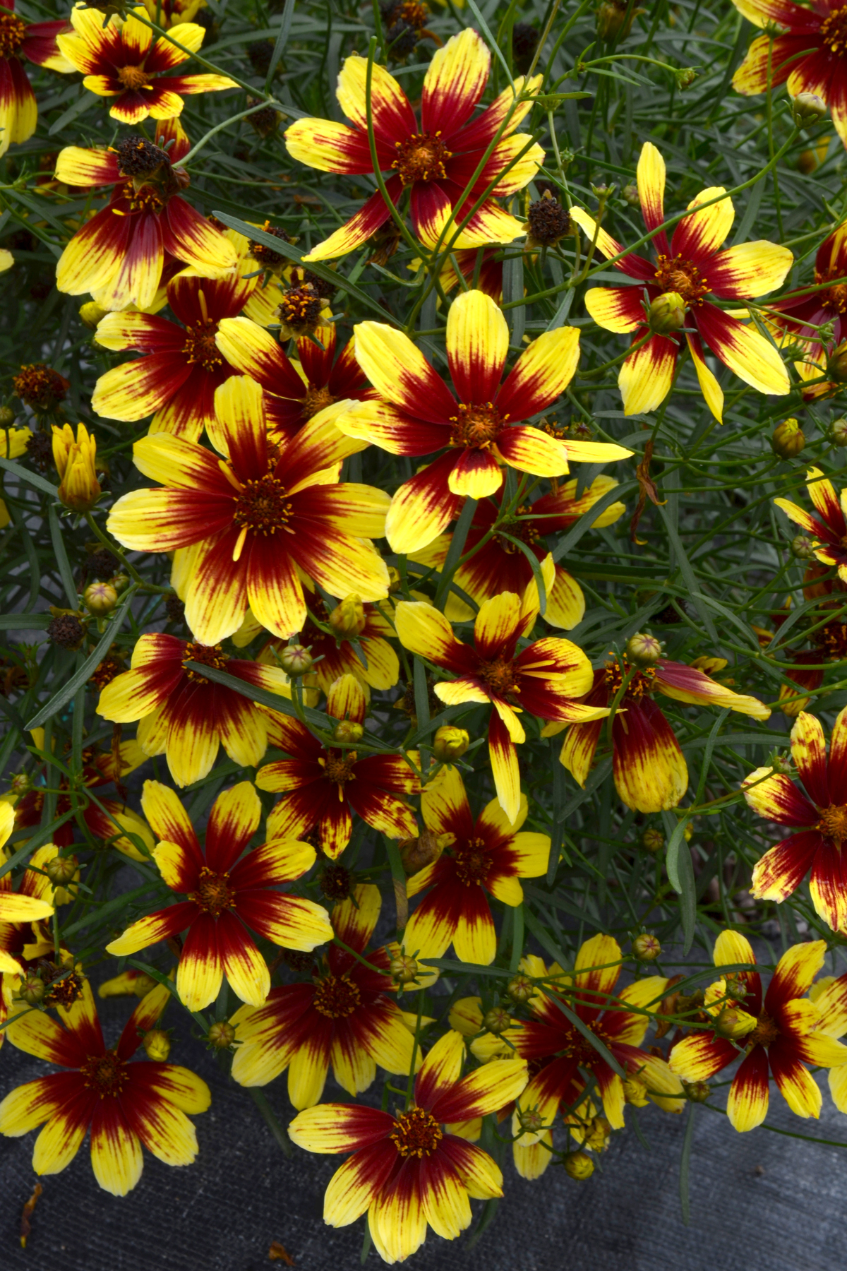 Fiery flowers glow red and gold, like tiger eyes, on this gorgeous garden STAR. Extra hardy Coreopsis verticillata breeding makes this a star for every area of the U.S. 'Bengal Tiger' has a clean, manicured habit and feathery, mildew-resistant foliage that brings our breeding program up a notch against the competition. A constant performer for garden and containers.
