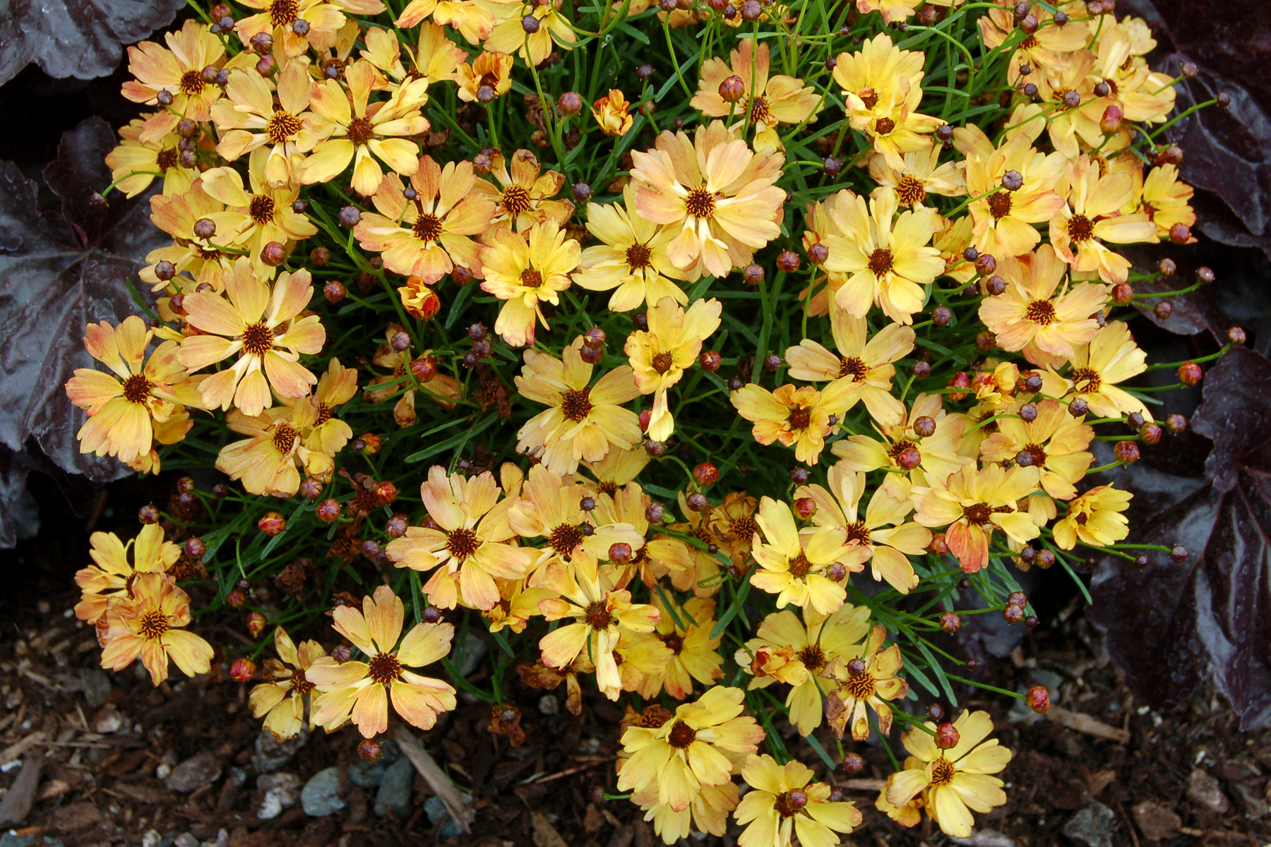 Soft yellow flowers are lightly fluted and kissed with rose-pink. Lacy foliage provides a nice background for the free-flowering one inch flowers.