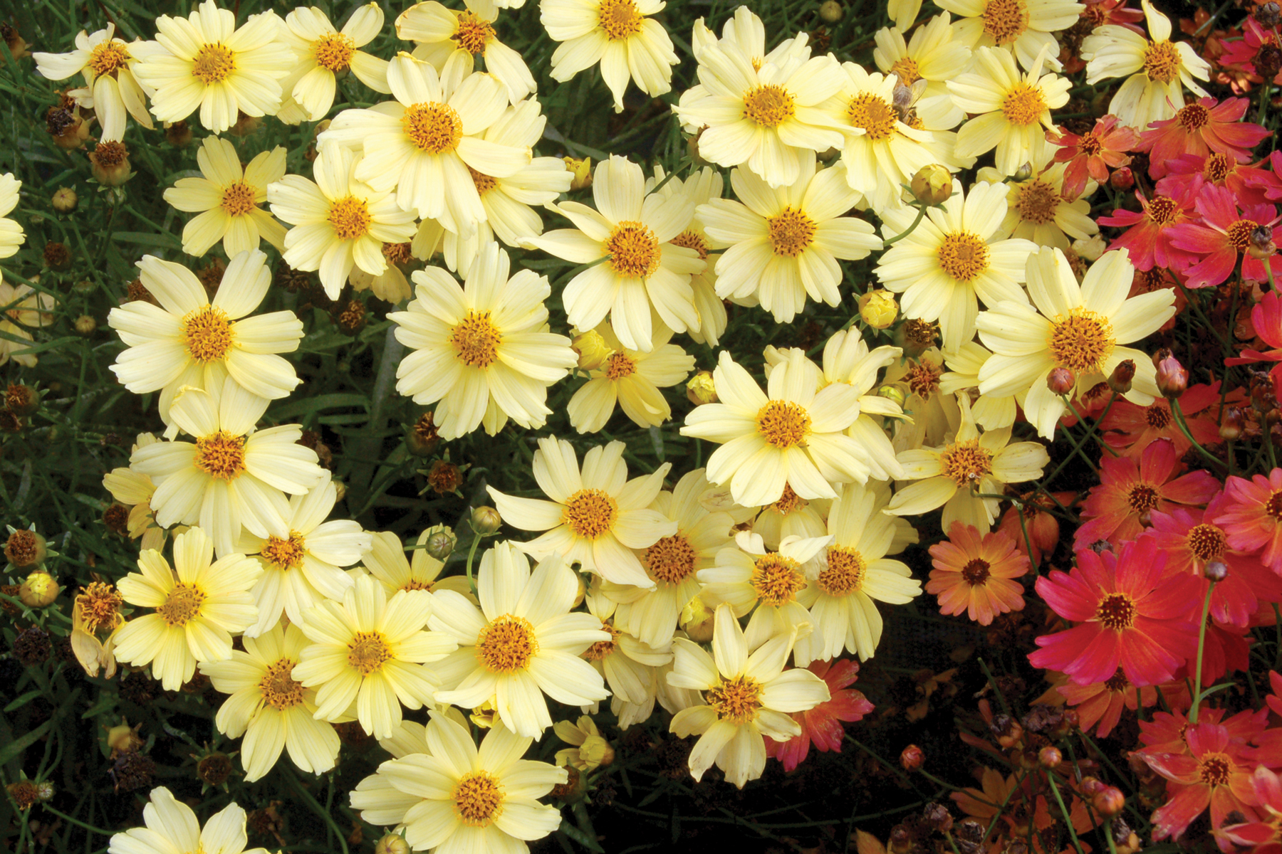 'Moonlight' blooms continuously for 3 to 4 months. Each plant has over 150, 2″ pastel-yellow flowers which change color to peach in cool weather.