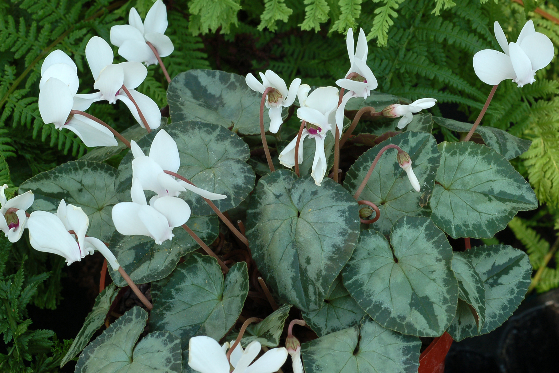 | How Different? | A tissue cultured hardy cyclamen with very well marked leaves of silver and green and short white flowers. |