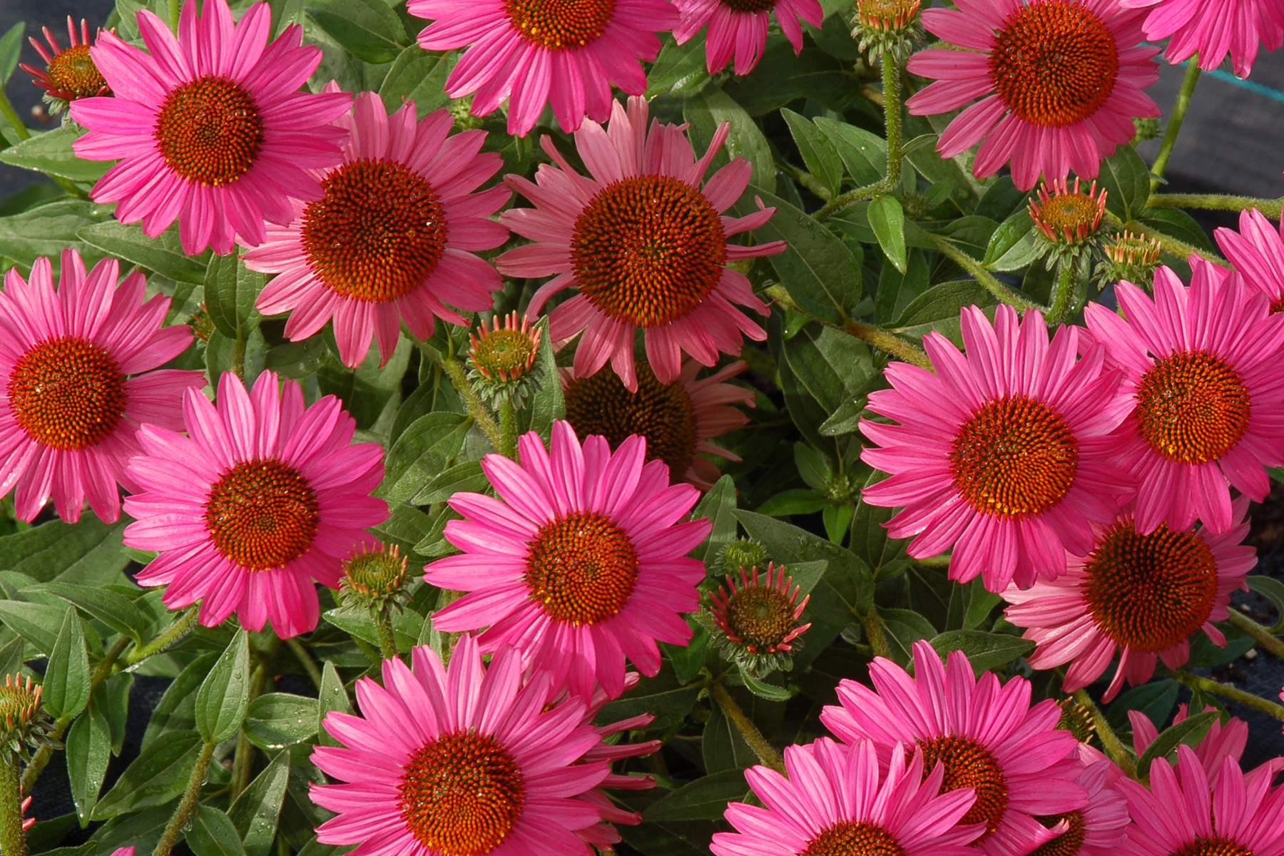 A dream in the landscape with its compact habit, amazing number of flowers, and long season of bloom. Flowers are deep pink. Bred with E. tennesseensis for floriferousness. A great landscape plant for a long show of color. Received the highest rating at MSU for container culture.
