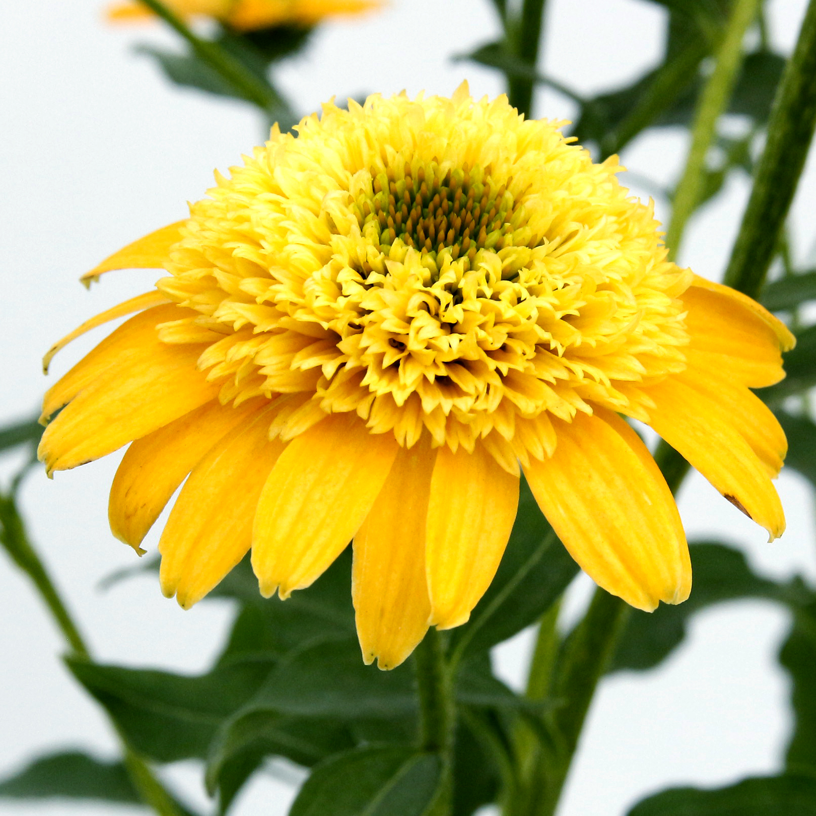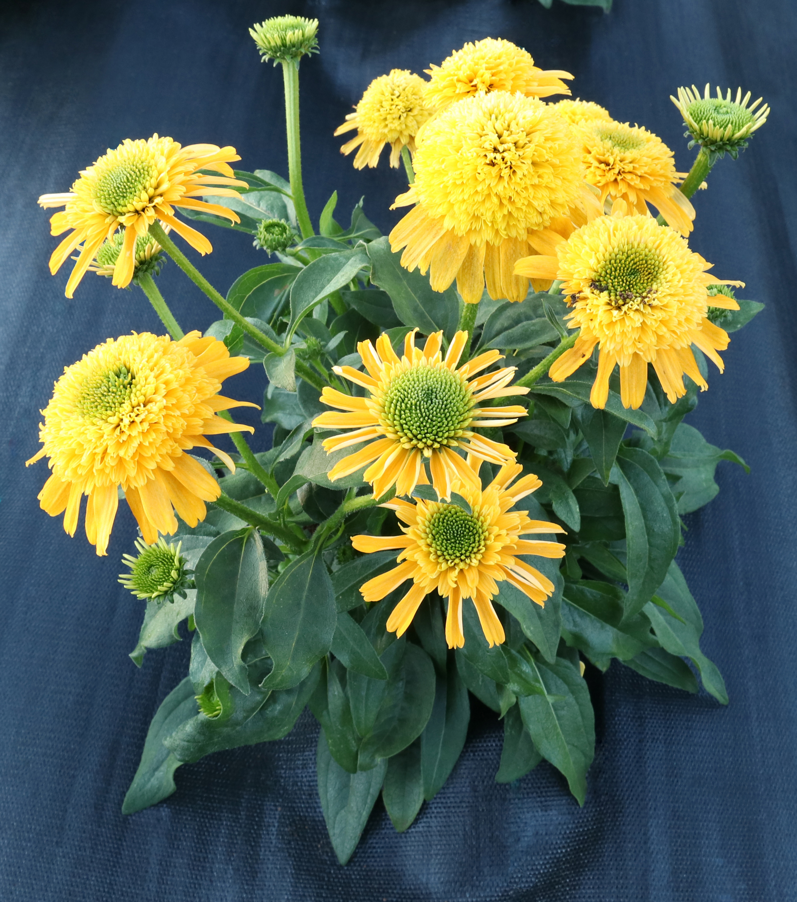 Bred for the pot crop market. This glowing ball of butter-yellow with a deep emerald-green eye is perhaps the best pot crop type Echinacea TERRA NOVA® Nurseries has bred. So many flowers over so many months, in greenhouses and out have made a whole new plant class within Echinacea’s. Great garden performance gives value as a landscape plant, too. Dark green foliage, sunny yellow flowers and plenty of flower power make this a worthy addition to a professional nursery line up.