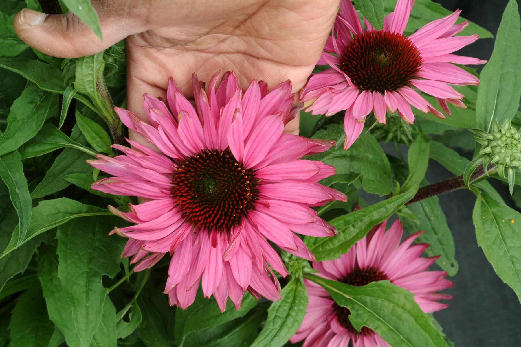 Plant one liner per 4-inch or gallon pot. Make sure not to cover the crown with soil by planting too deep; incorrect planting depth is the most common cause for losses in Echinacea. The soil levels of the pot and the liner should match up evenly. A broad-spectrum preventative fungicide after transplanting is recommended – check labels for desired rates and application intervals, and (as with any chemical) test on a small group of plants before applying to the entire crop.