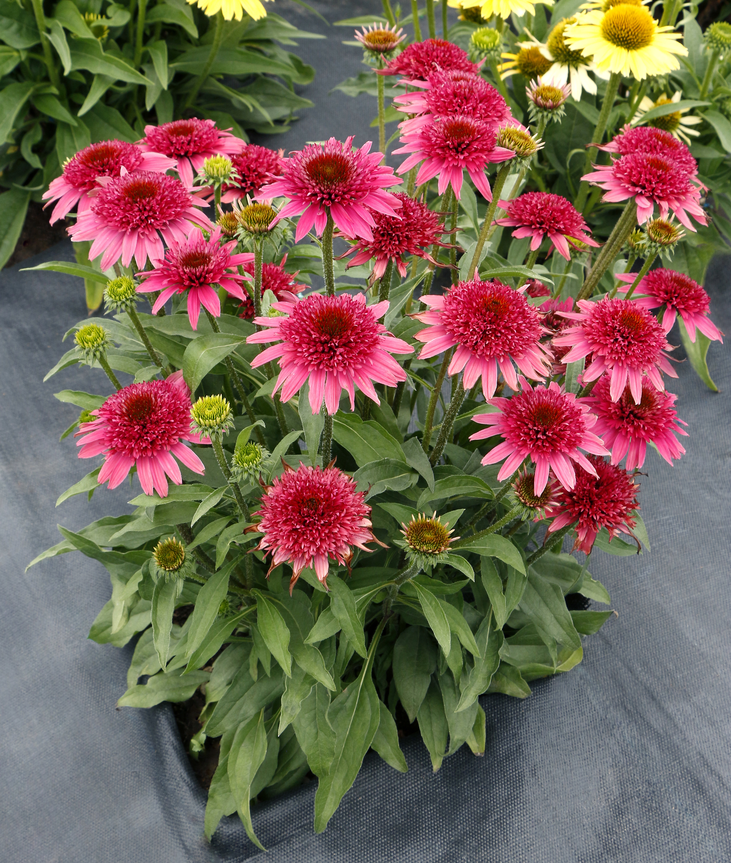 Plant one liner per 4-inch or gallon pot. Make sure not to cover the crown with soil by planting too deep; incorrect planting depth is the most common cause for losses in Echinacea. The soil levels of the pot and the liner should match up evenly. A broad-spectrum preventative fungicide after transplanting is recommended – check labels for desired rates and application intervals, and (as with any chemical) test on a small group of plants before applying to the entire crop.