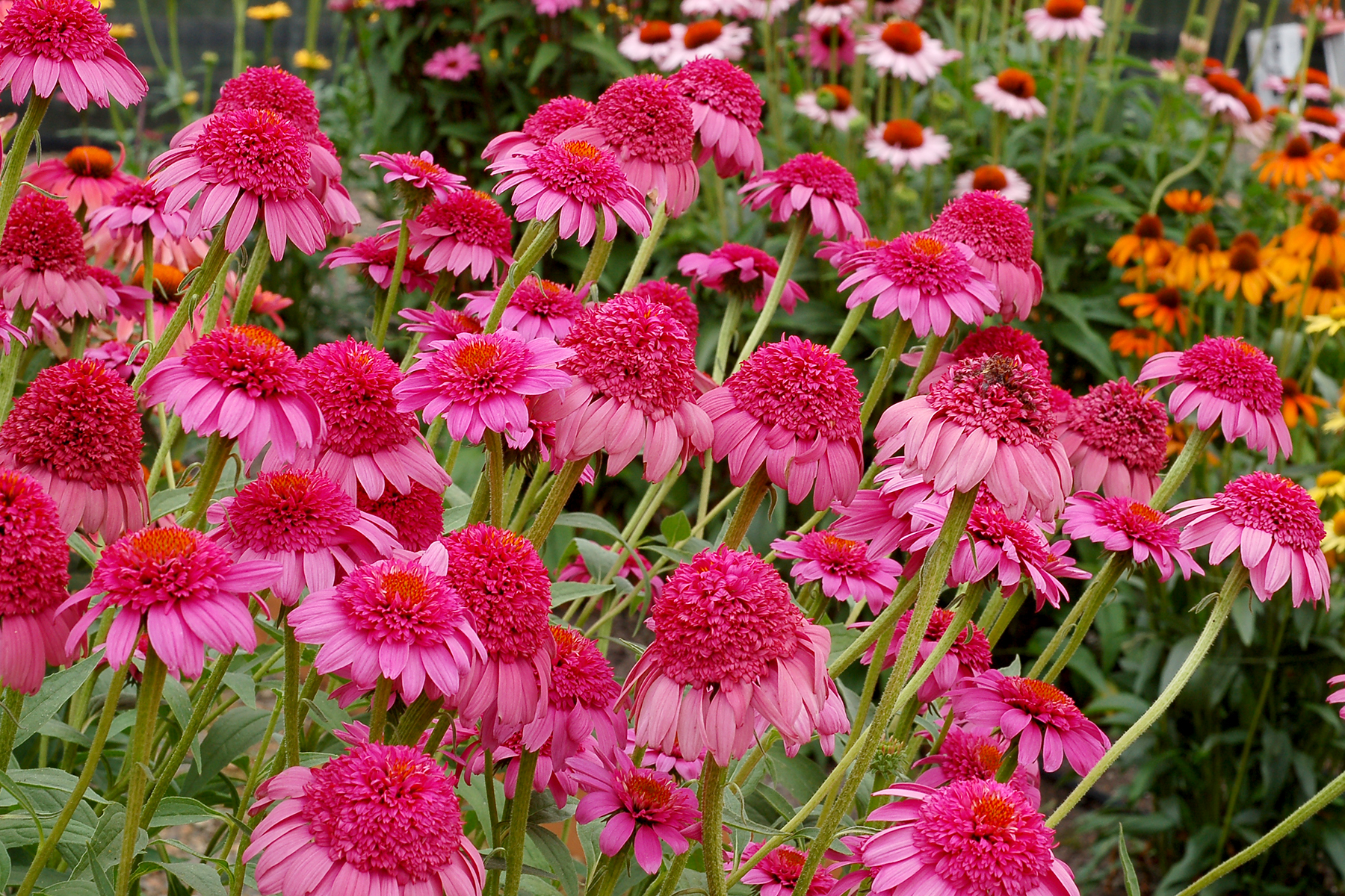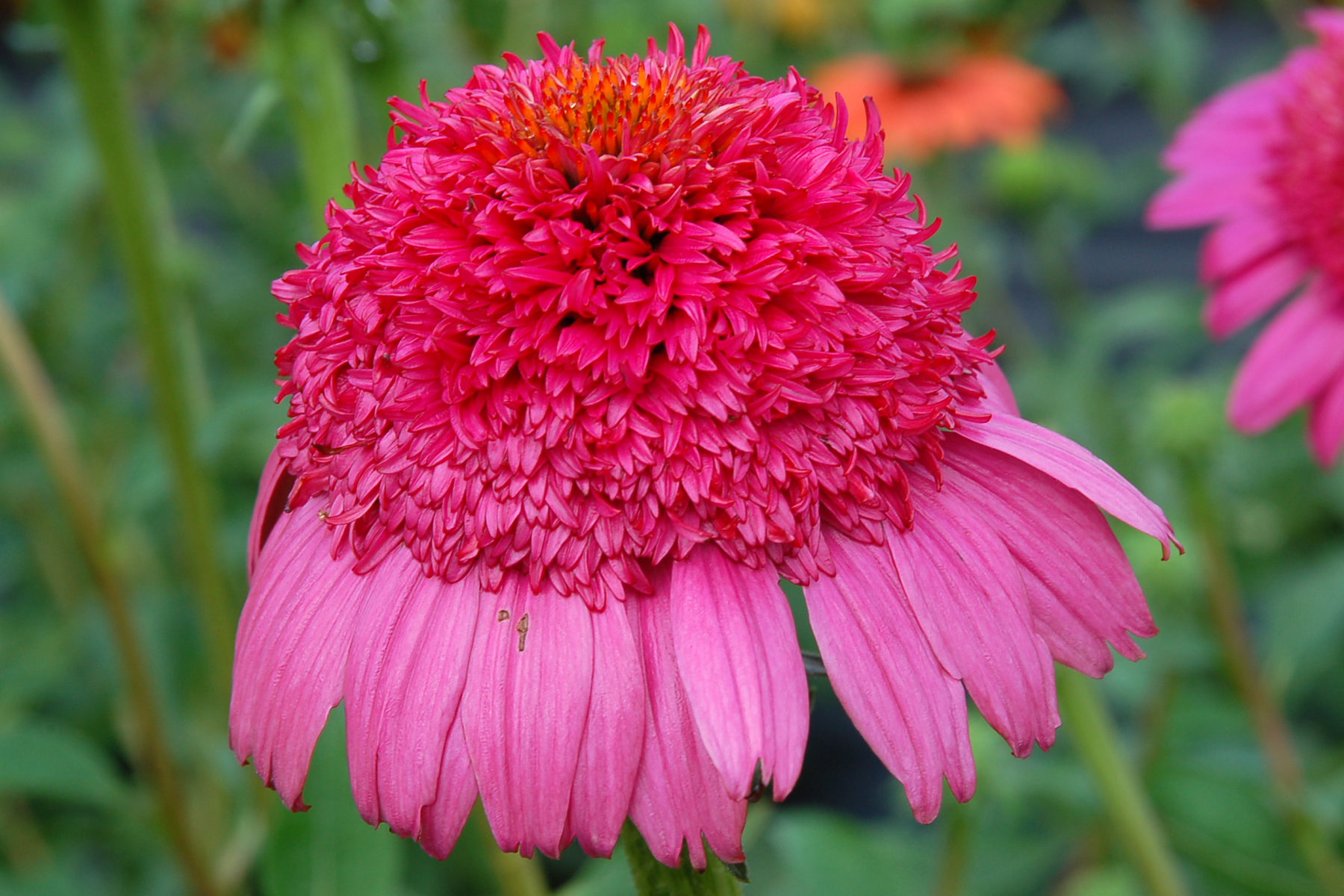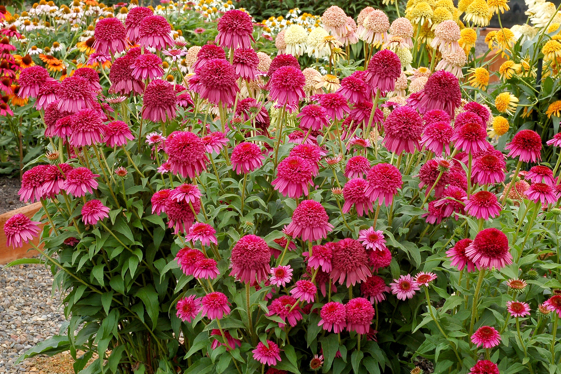 Dark pink, double, feathery pom-poms are held over broad pink petals on strong stems. A full-sized plant for the middle of the border. We're used to people fawning over our plants, but this one got extra points for cuteness. A killer combo is to use 'Gum Drop' with pink Coreopsis and blue ornamental grasses. Won the Classic City Award from the University of Georgia Trial Echinacea 'GUM DROP' Gardens in 2010.
