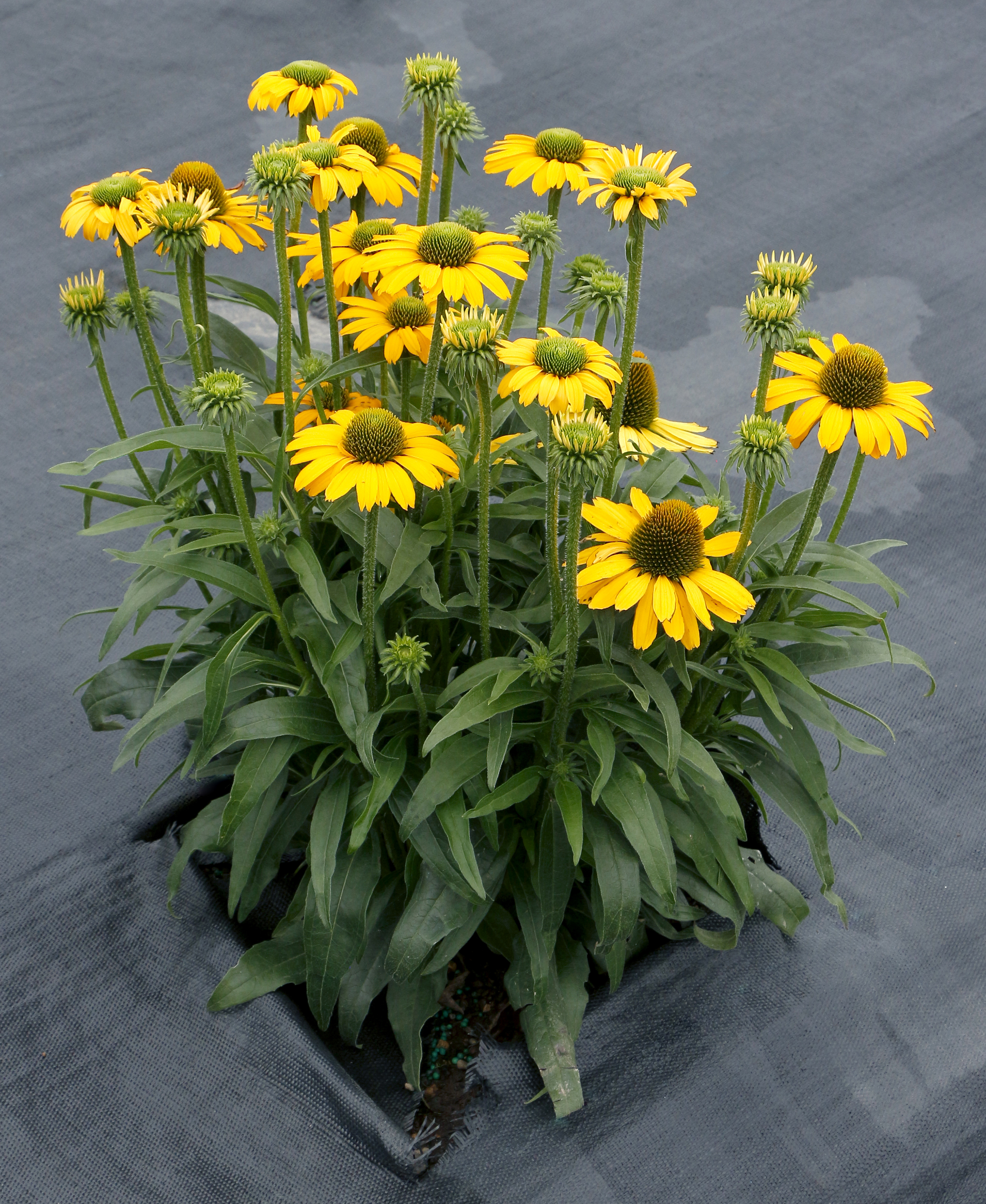 Dazzling bright golden yellow blossoms on verdant bright green foliage are complemented by an emerald green shifting to sunny yellow cone. Compact yet vigorous, PRIMA™ 'Amarillo' looks great for summer retail sales. Ideal for containers, also great for front of beds and borders. Well branched with multiple crowns, blooms the first year with numerous flowers.