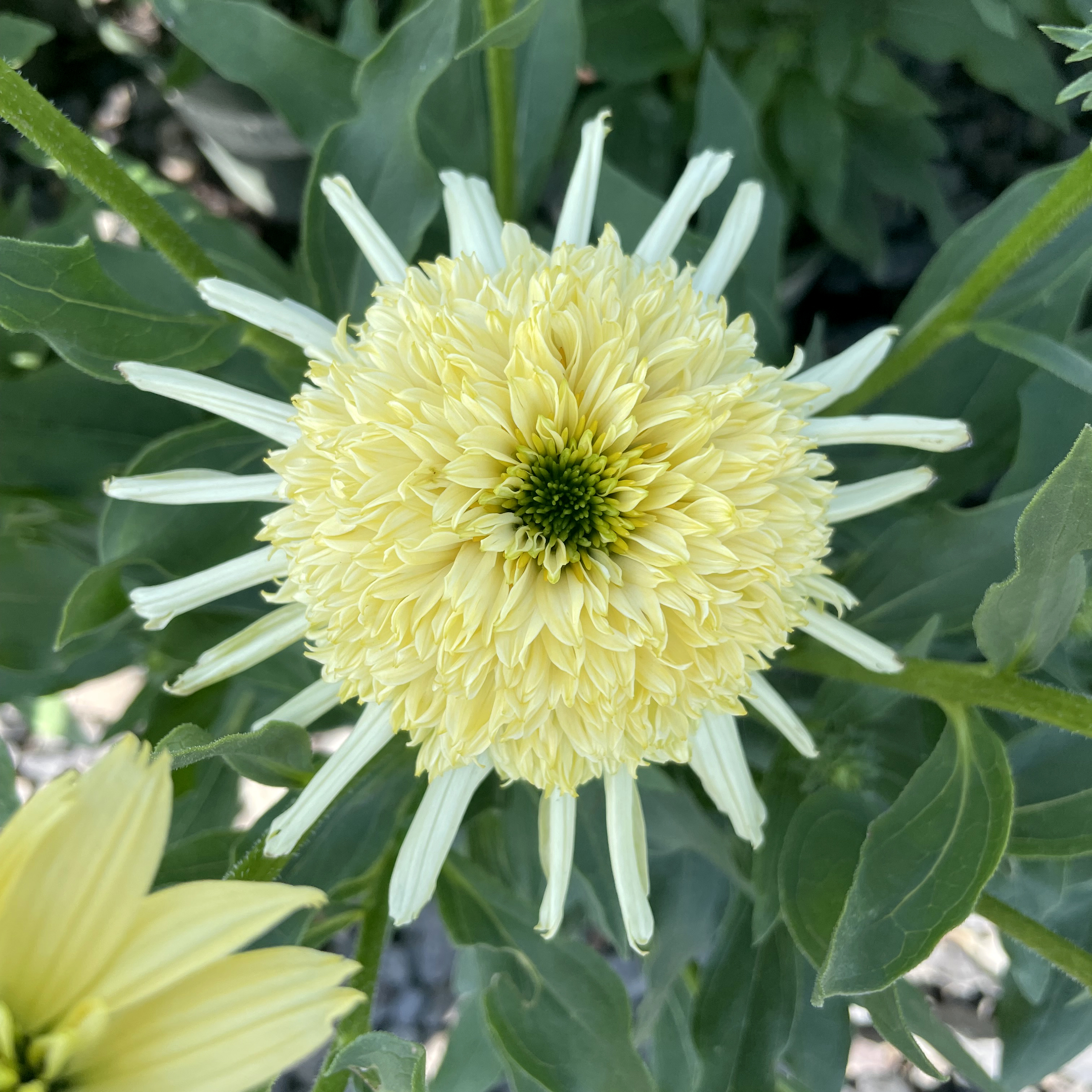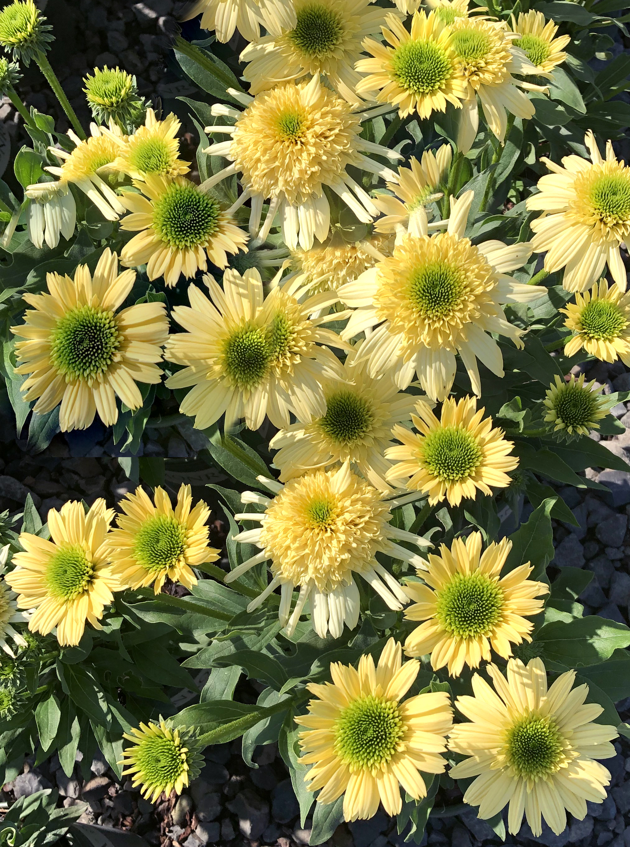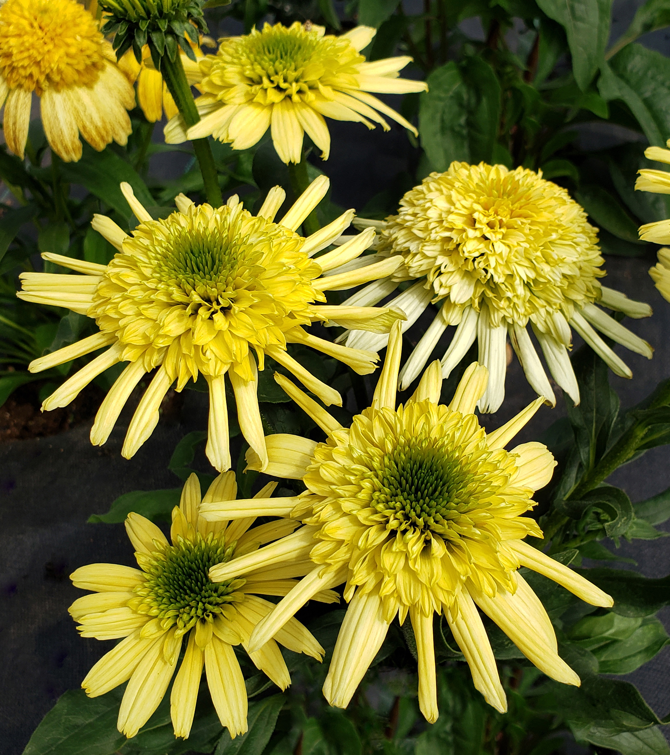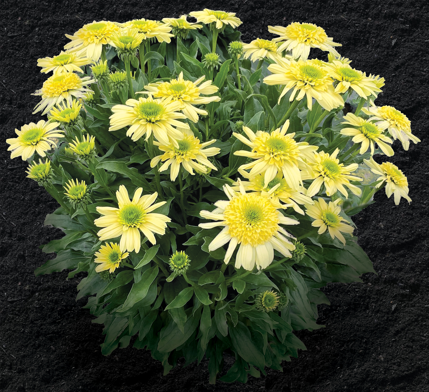 Novel Anemone type flowers highlighted by semi-quilled ray petals. Emerald green eyes give way to a primrose yellow cone, supported by cream colored ray petals on older flowers. Plant habit is short, branching from the base. Great for pots.