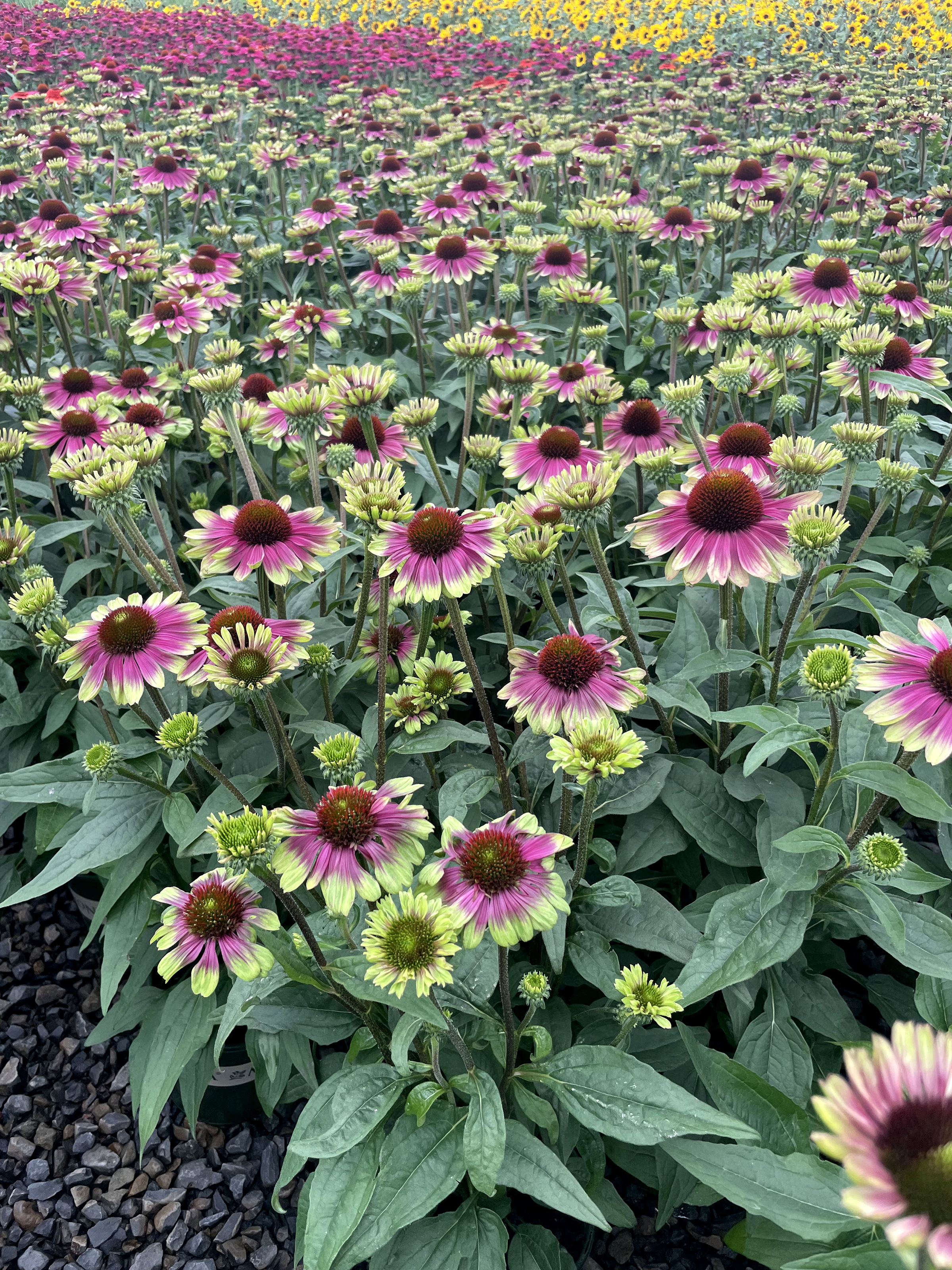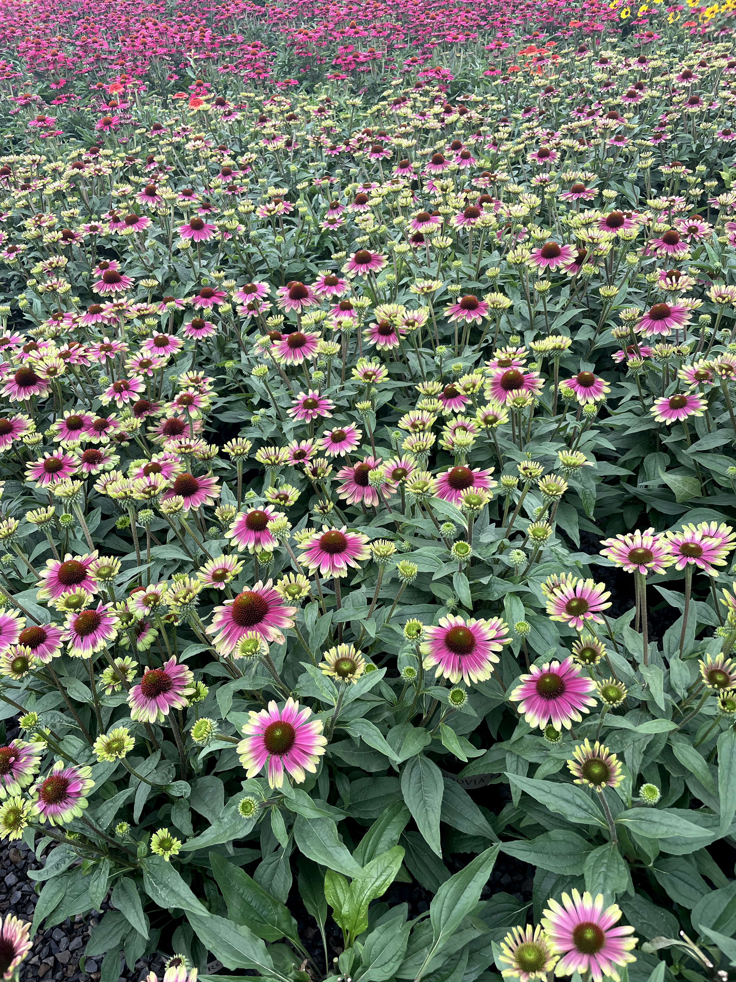 We haven't been this excited about an Echinacea introduction since the first of the KISMET™ series! Single, broad petaled flowers each look a slice of watermelon. So pretty! Compact habit and tons of flowering stems have made this our most sought after plant in years. Uniformity of this clonal variety make scheduling and sales easy. 'Sweet Sandia' is destined to become a consumer favorite.