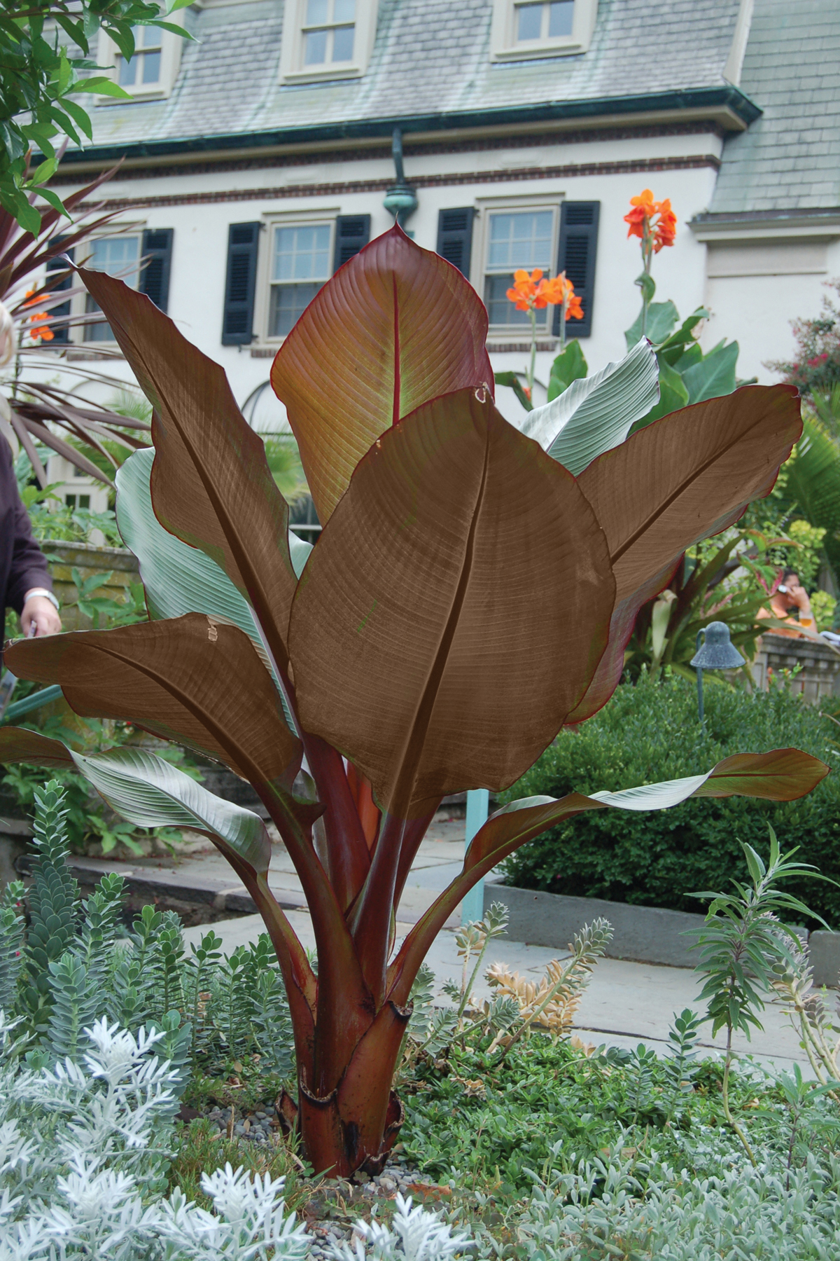 Can you say, “Bold?” This is one dramatic foliage plant with huge, waxy fronds of reddish-purple tones superimposed over deep green… similar to Ensete 'Maurellii', but with more contrasting leaf and vein color. Use this bold banana for an exotic, tropical look.