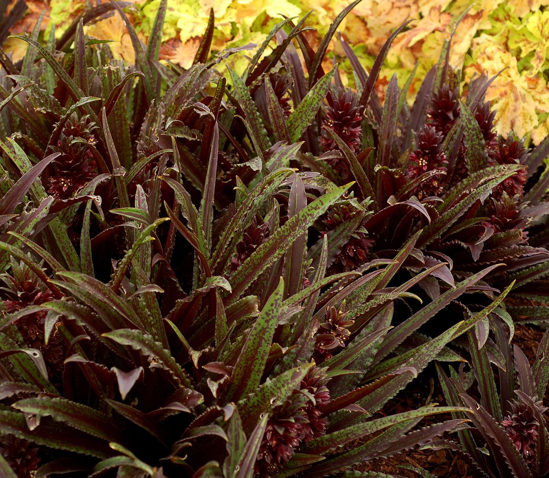 Like its sister 'Freckles', 'Dark Star' performs in many venues. Very dark, red-black foliage is fantastic when planted with silver or gold colored foliage. Another great dwarf, hardy Eucomis from TERRA NOVA®. Startling when planted with Veronica 'Aztec Gold'. Equally charming flowers in late summer.