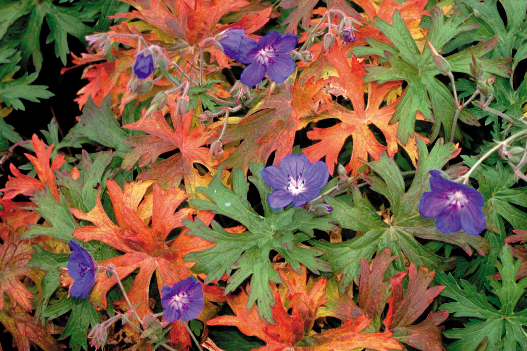 Large blue-violet flowers are produced over a very long period on this large, well-shaped cultivar. One of the best geraniums! Very impressive fall color.