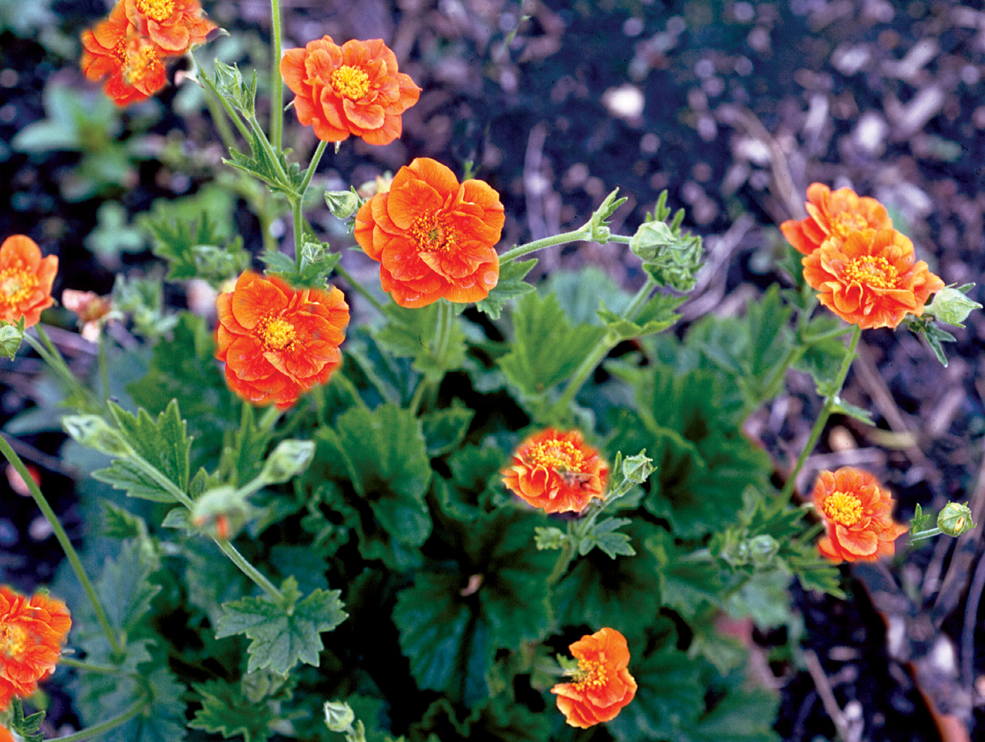 Low growing form of G. coccineum with shocking semi-double deep orange flowers, which are very long blooming.