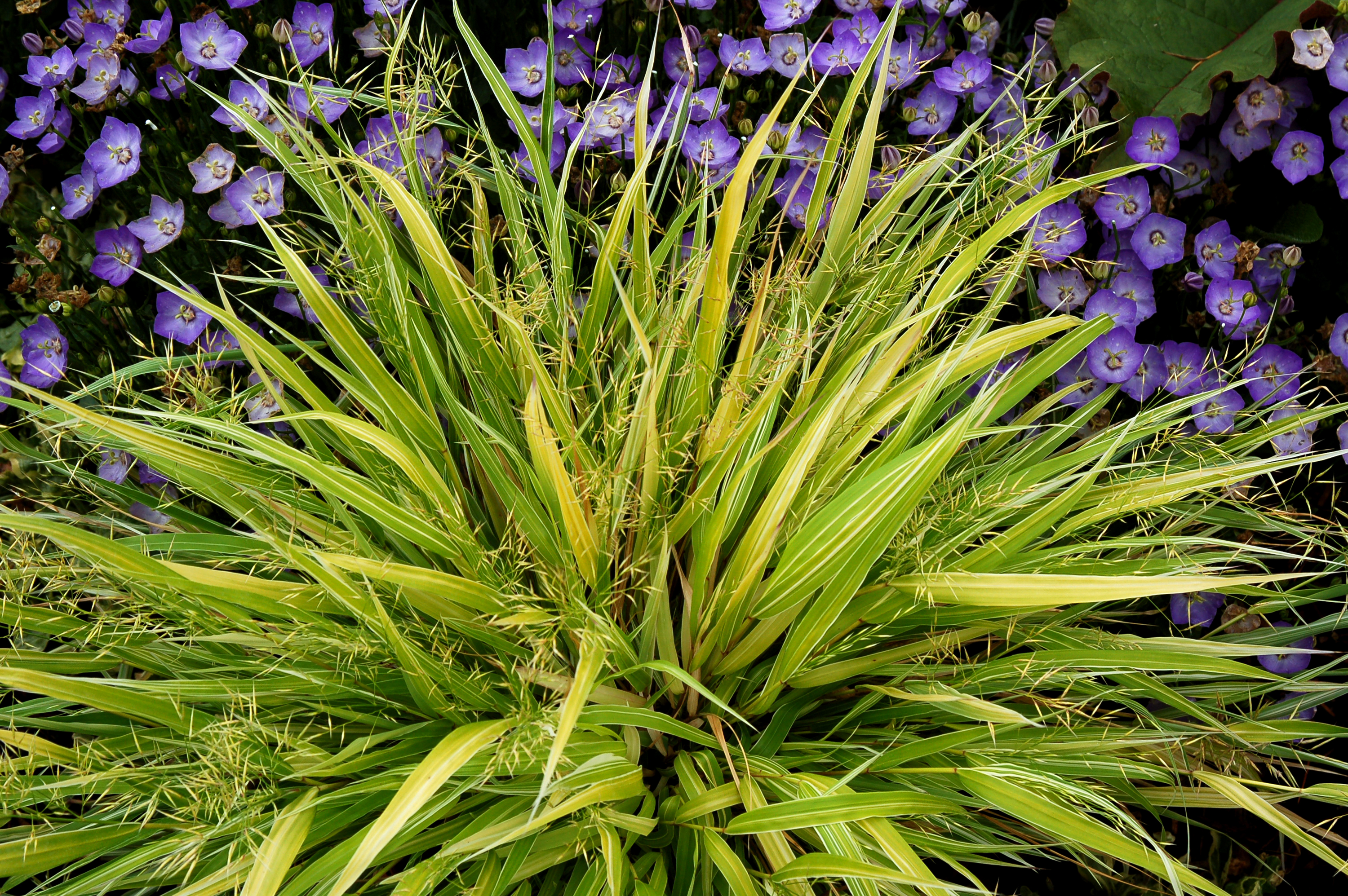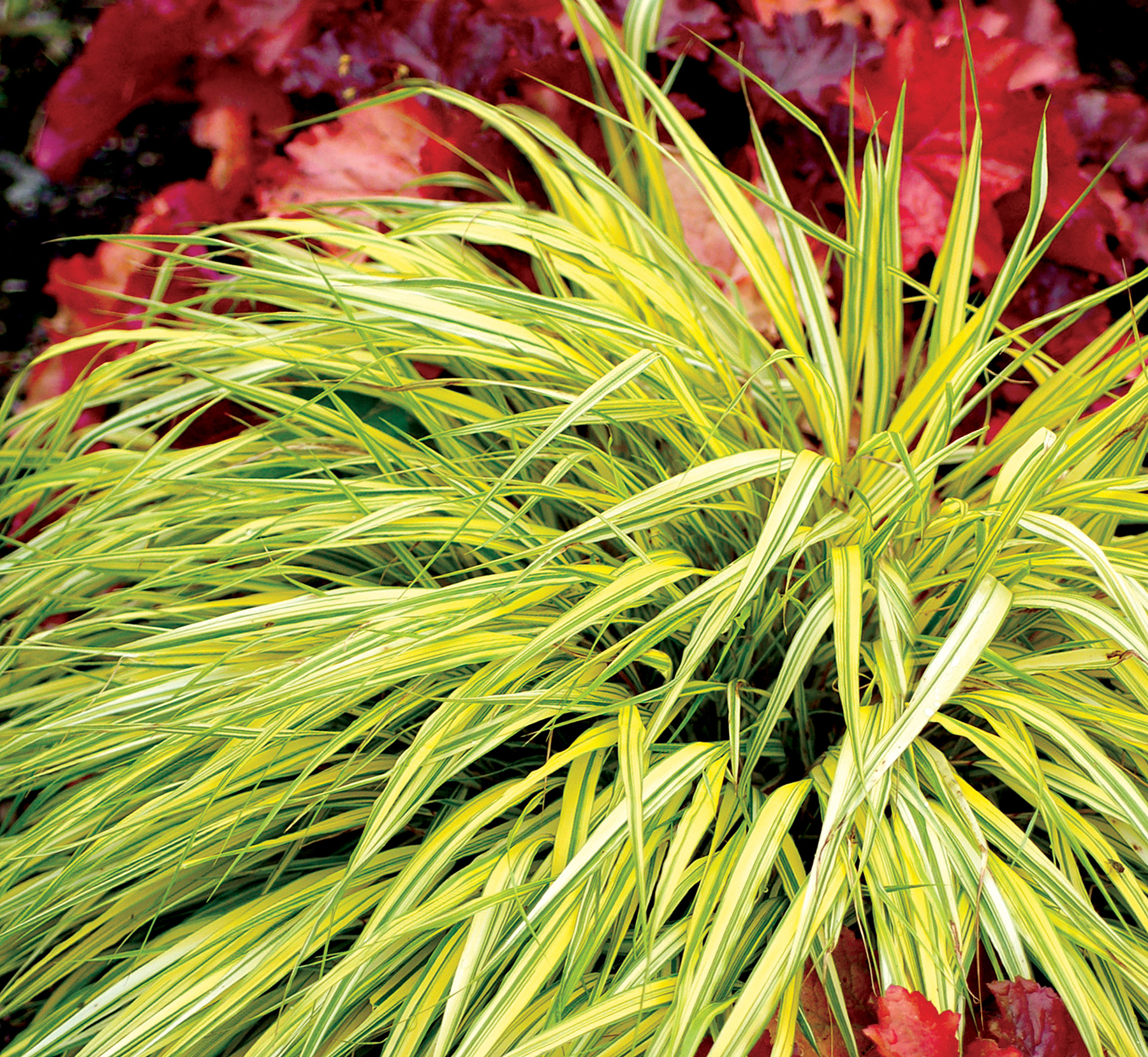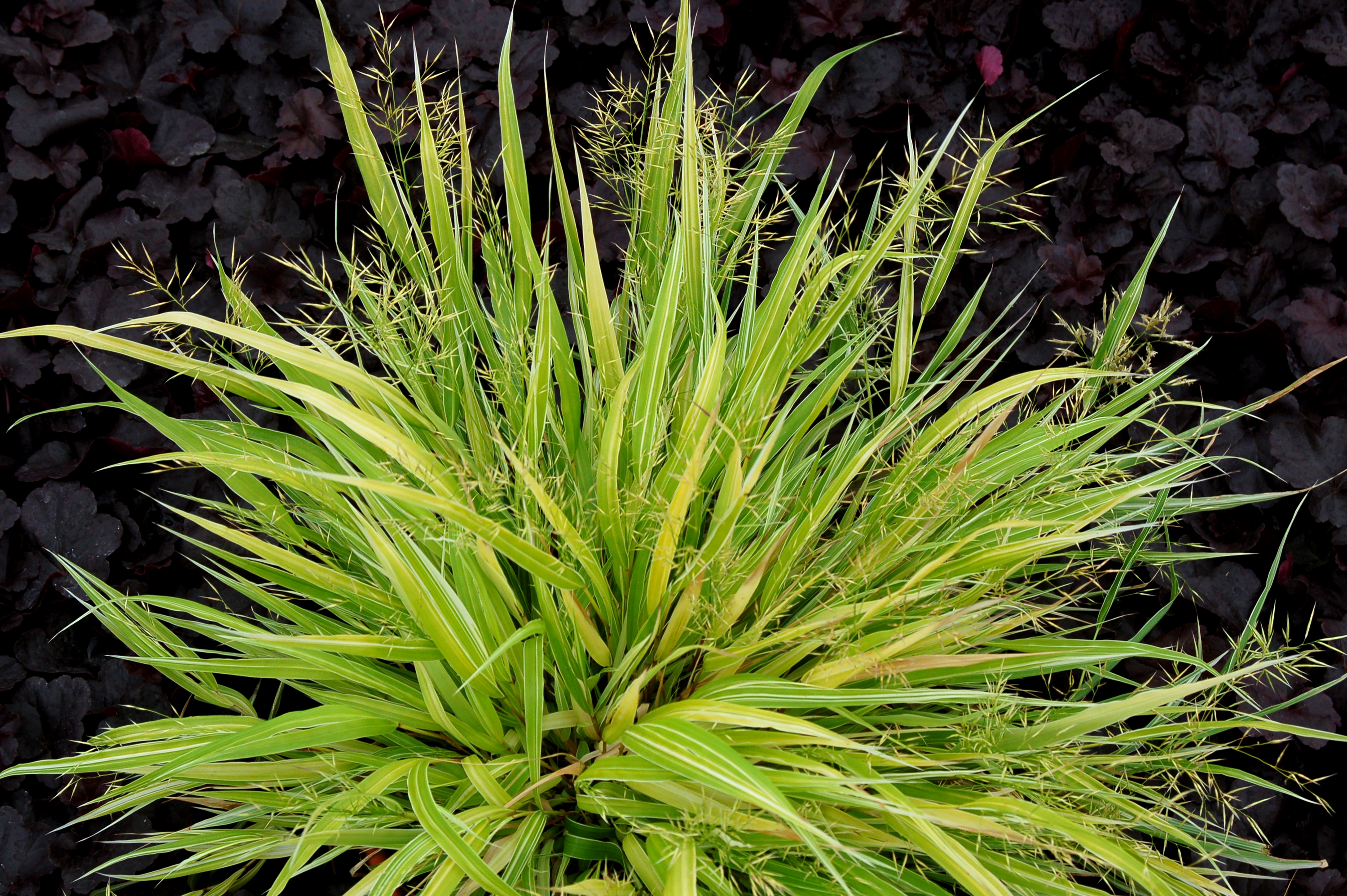 Yikes! Stripes! These white-striped, golden leaves create a new spin on the shade tolerant Japanese Forest Grass. 'Stripe It Rich' grows vigorously in full to partial sun. It is spectacular as a woodland accent, in containers, along pathways or entrances, and adds an Asian garden look.