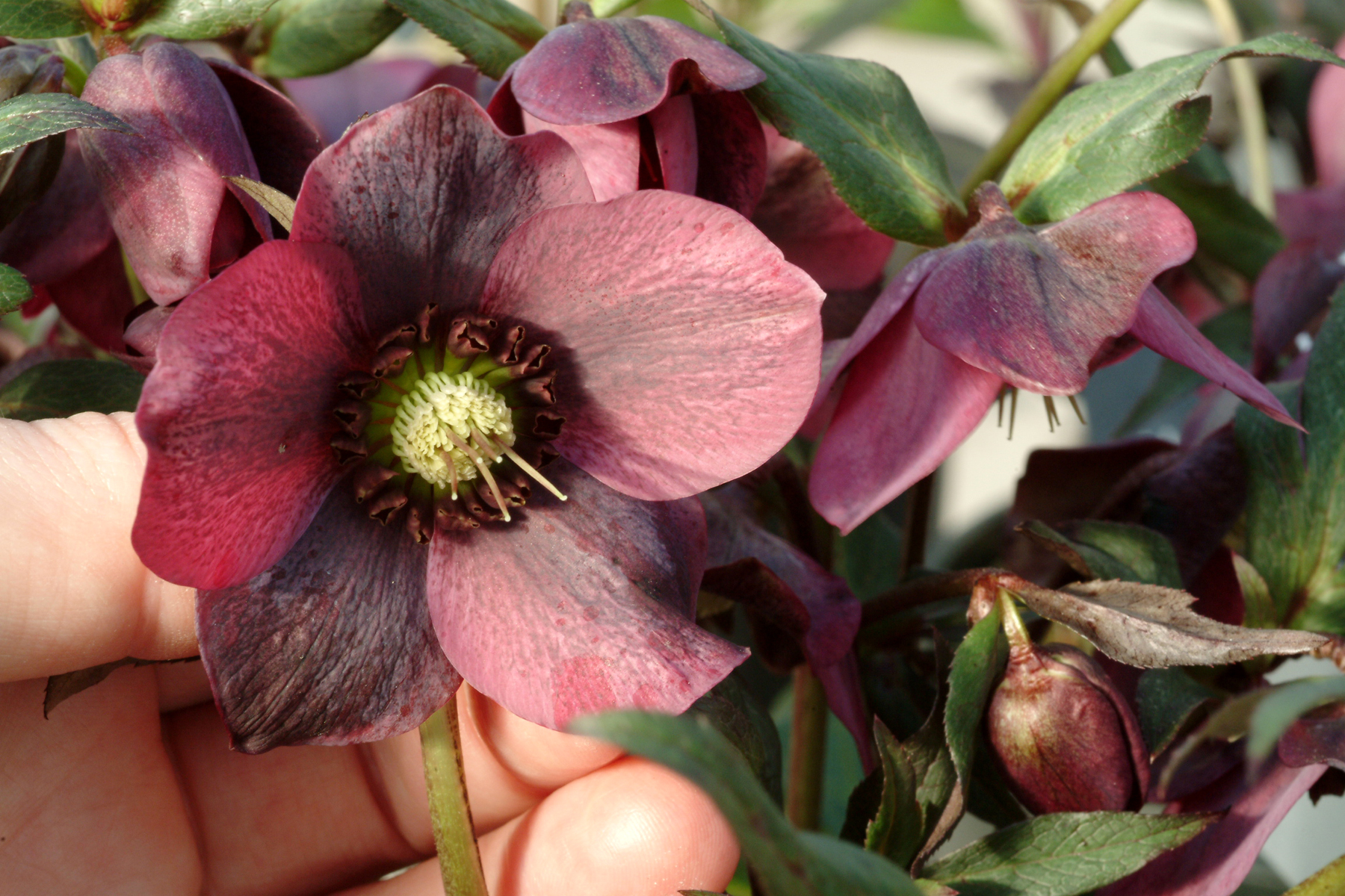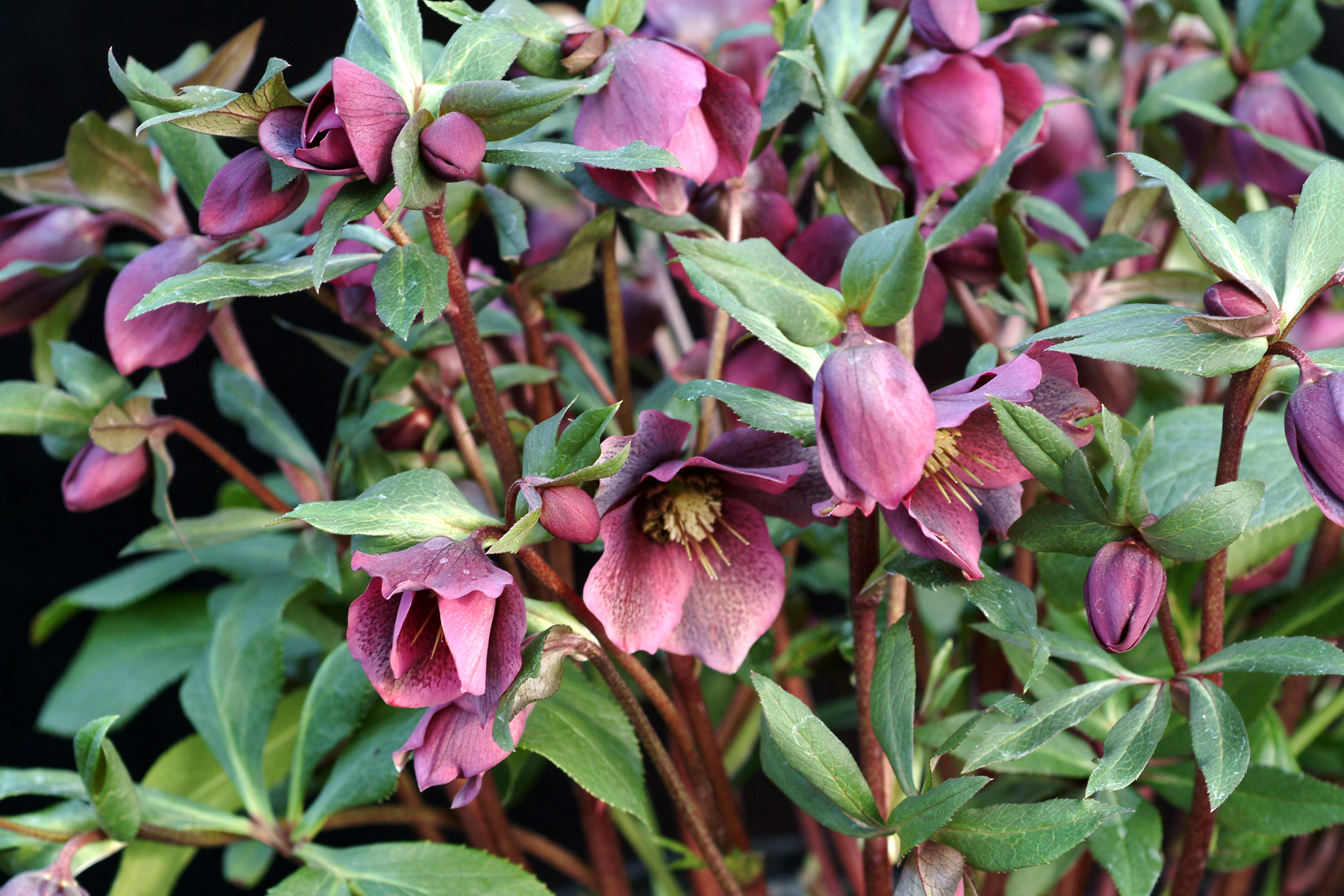 This is a vigorous hellebore has a multitude of amazing dusky rose pink flowers. On the inside of the flower the center third of each petal has a dark slate shadow. A lovely plant. Very long bloom time.