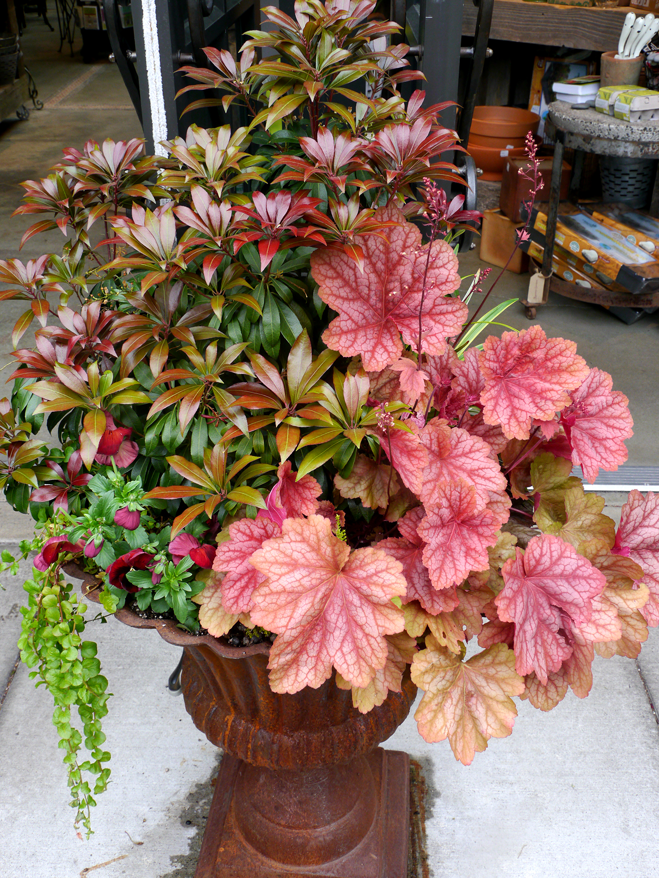 Pots: Coral bells grow beautifully in containers. Just make sure there is a hole in the bottom where the excess water can drain from. Transplant into the landscape in early fall if you’d like them to come back again next year. If you garden in zones 6b or warmer, they can be overwintered in containers.