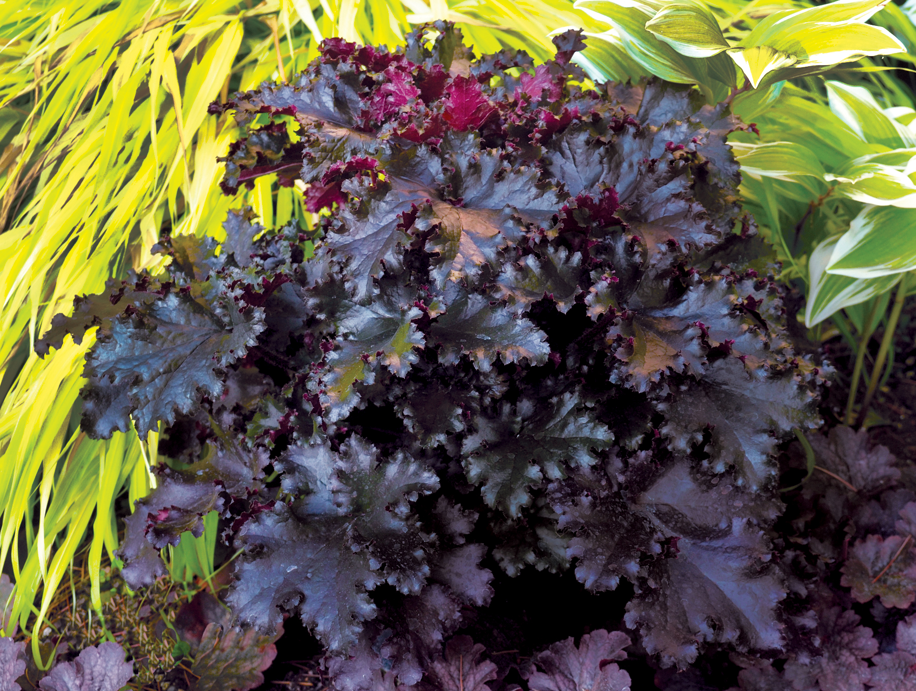 Silky, black foliage chicly ruffled as if it were launched from a Parisian fashion house! Large, glossy leaves in perfect proportion to the plant. Great vigor and reliability are TERRA NOVA® trademark in the world of Heuchera. You've got to see this one in person to fully appreciate its charm and elegance.