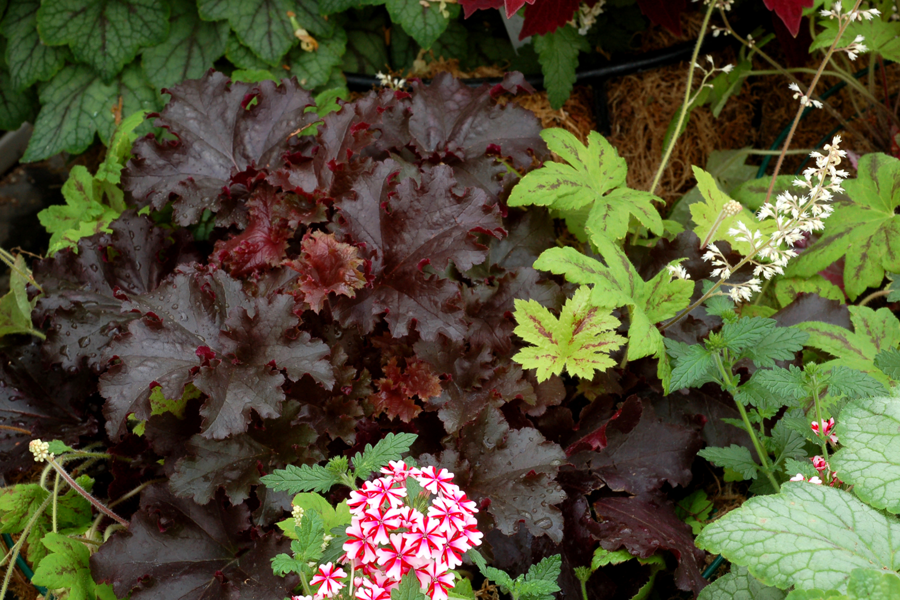 Heuchera goes well with many other perennials, trees and shrubs.
