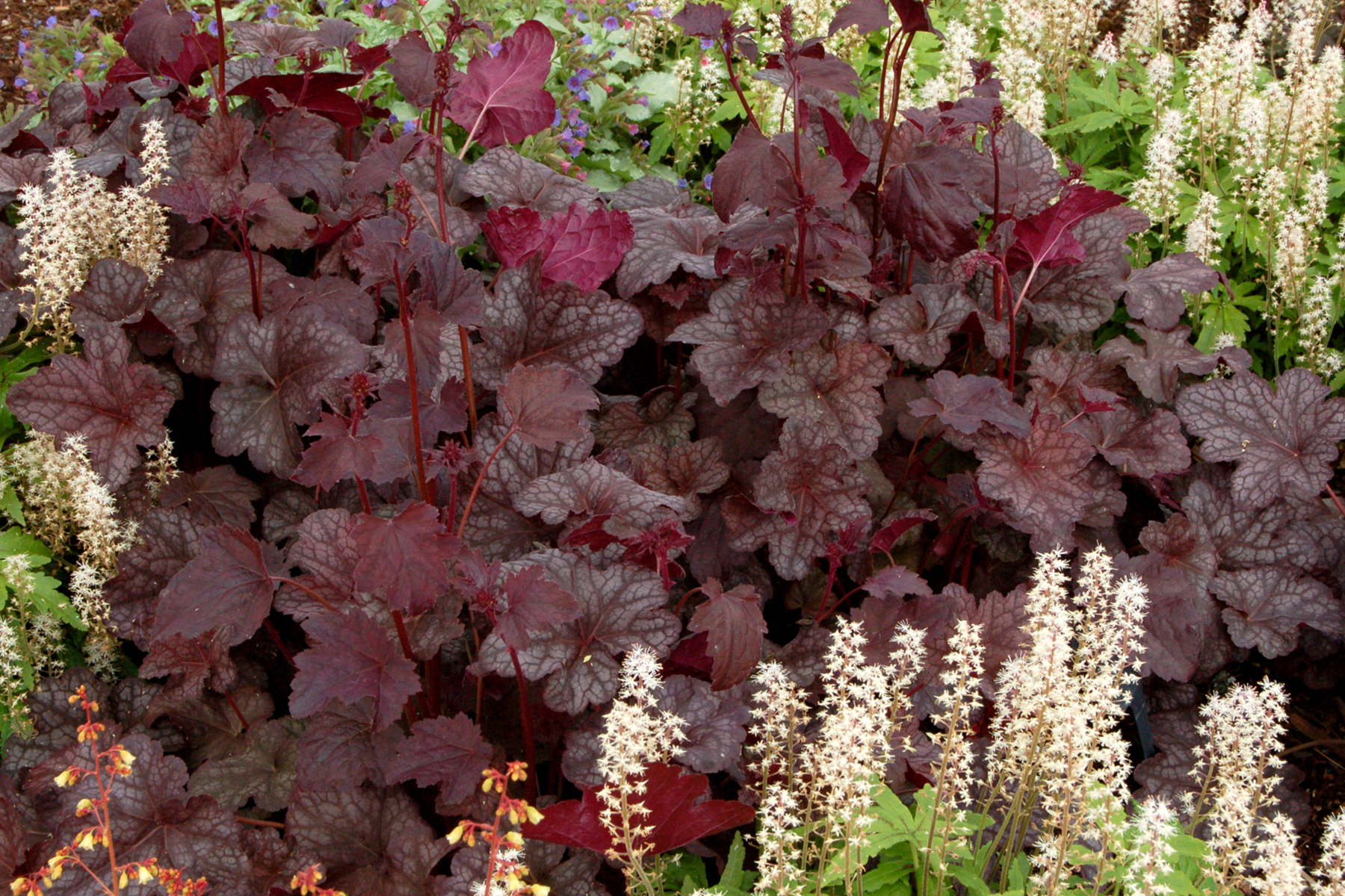 Heuchera goes well with many other perennials, trees and shrubs.