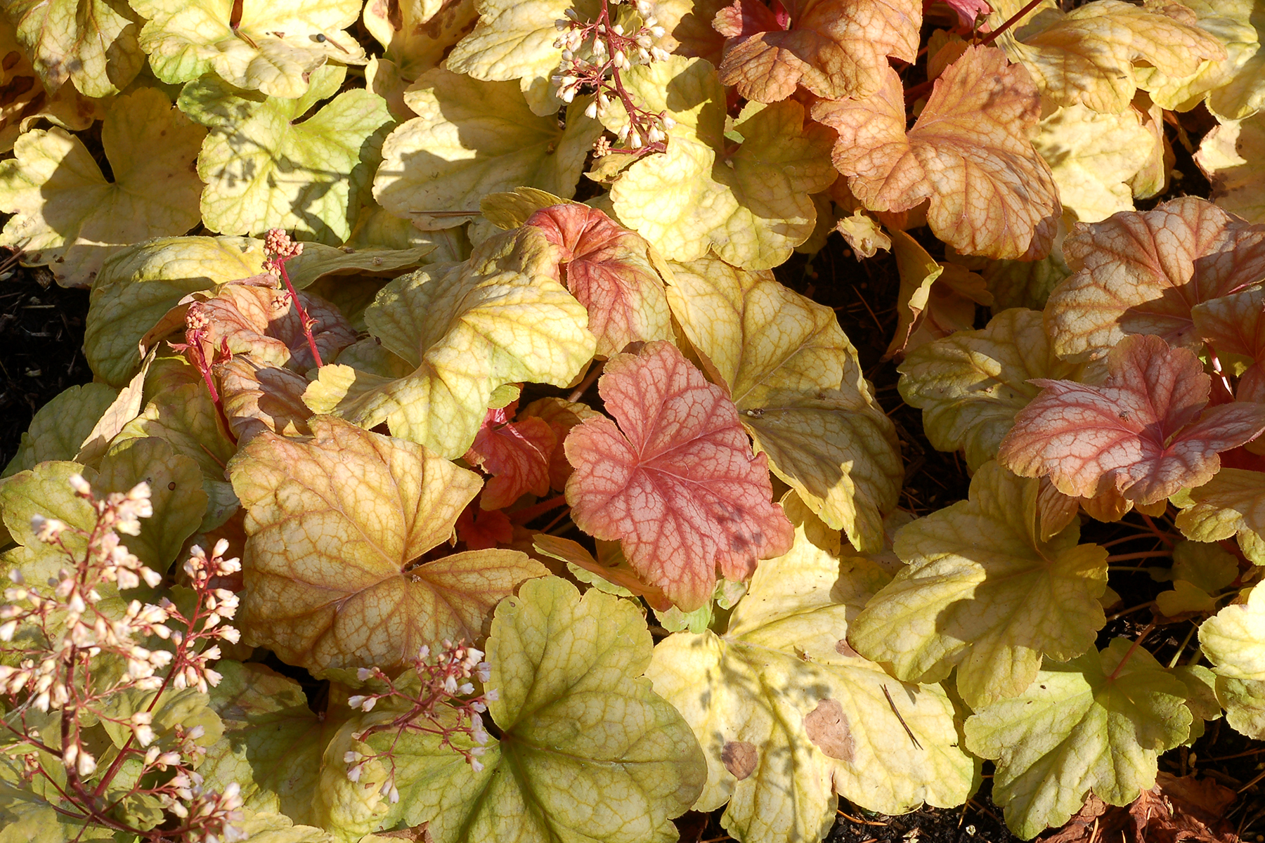Varieties with lighter colored leaves, like yellow or soft peach, need more shade to protect them from sun scorch. Plant them in morning sun or full shade.