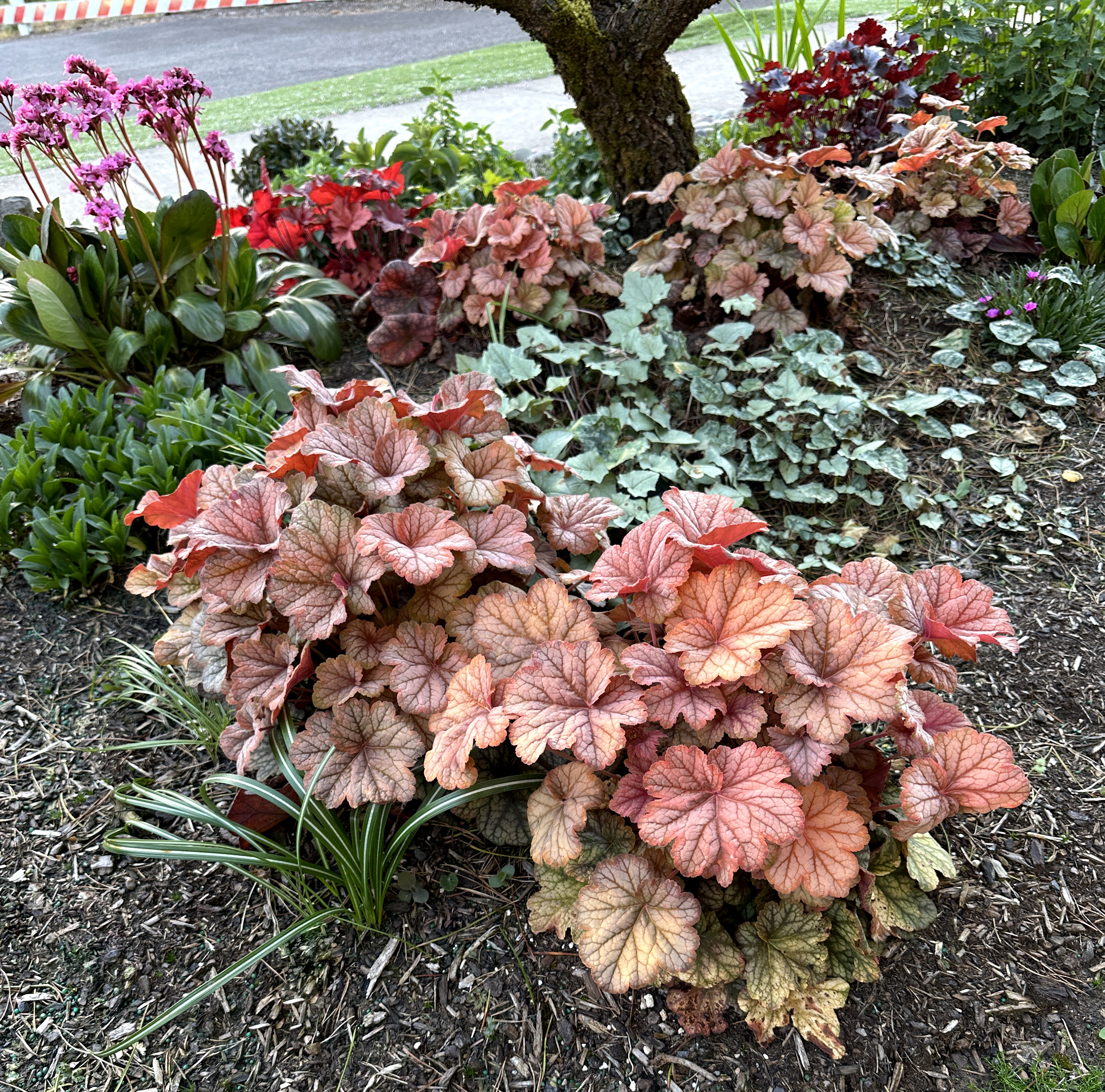Pots: Coral bells grow beautifully in containers. Just make sure there is a hole in the bottom where the excess water can drain from. Transplant into the landscape in early fall if you’d like them to come back again next year. If you garden in zones 6b or warmer, they can be overwintered in containers.