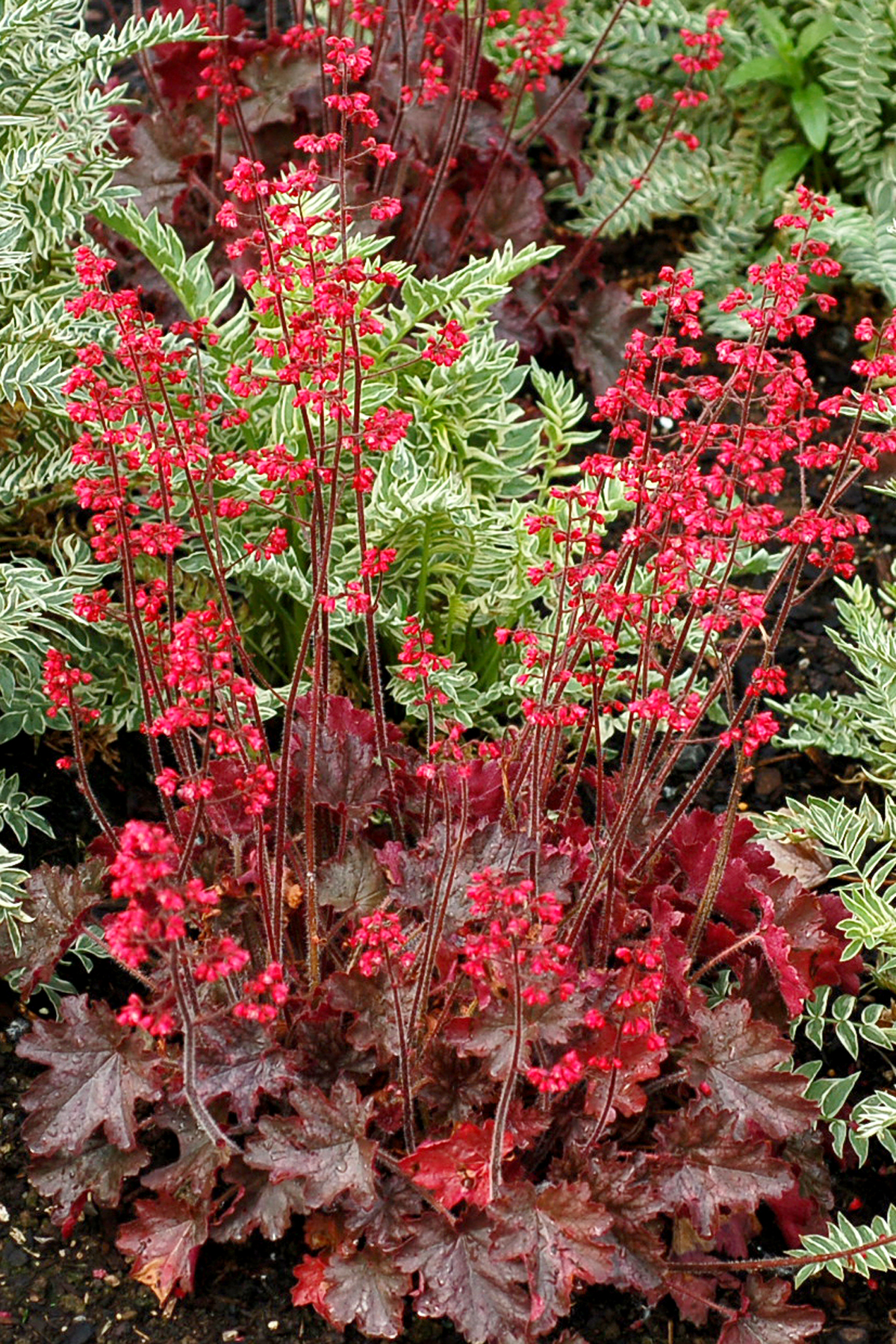 Heuchera goes well with many other perennials, trees and shrubs.