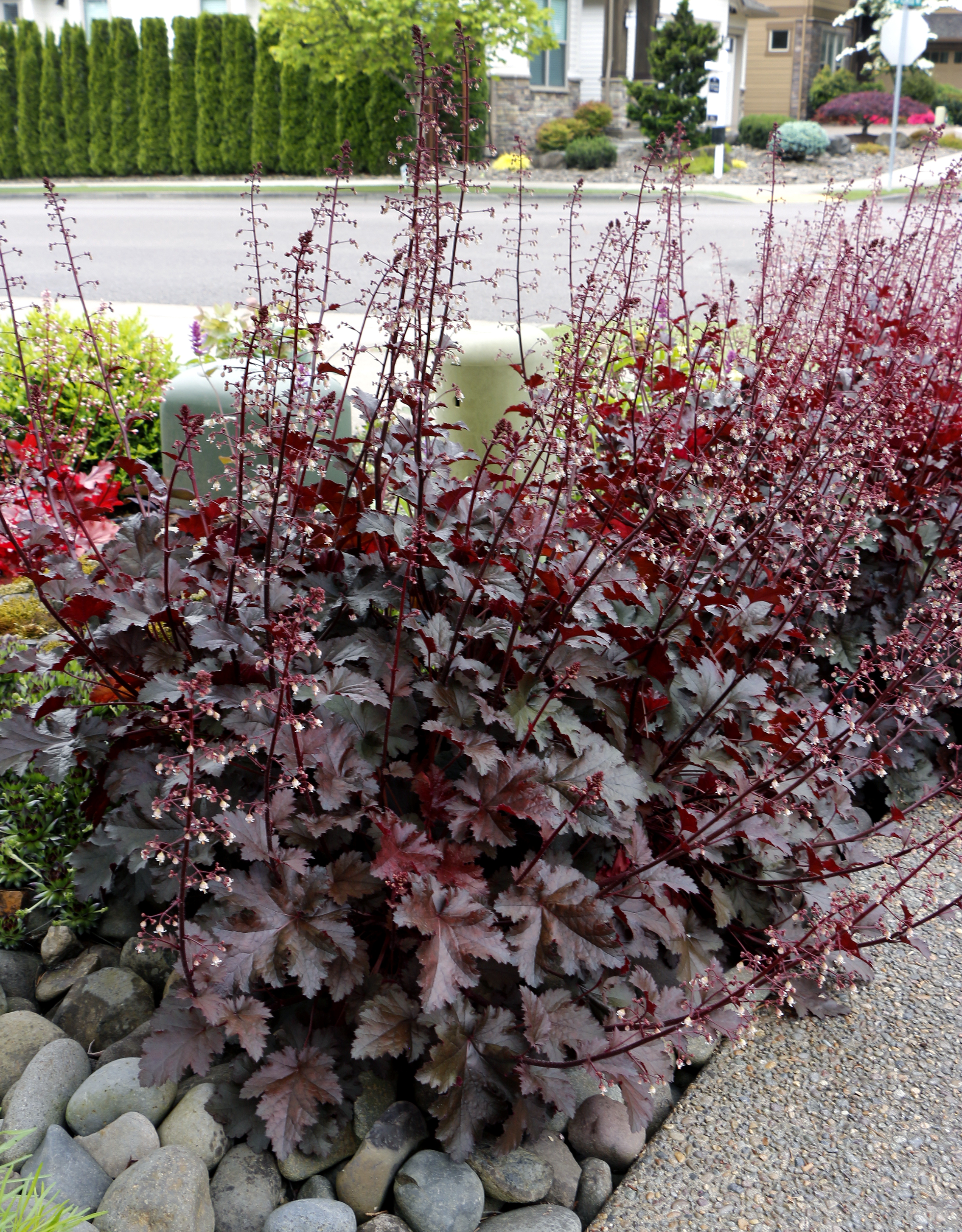 Heuchera goes well with many other perennials, trees and shrubs.