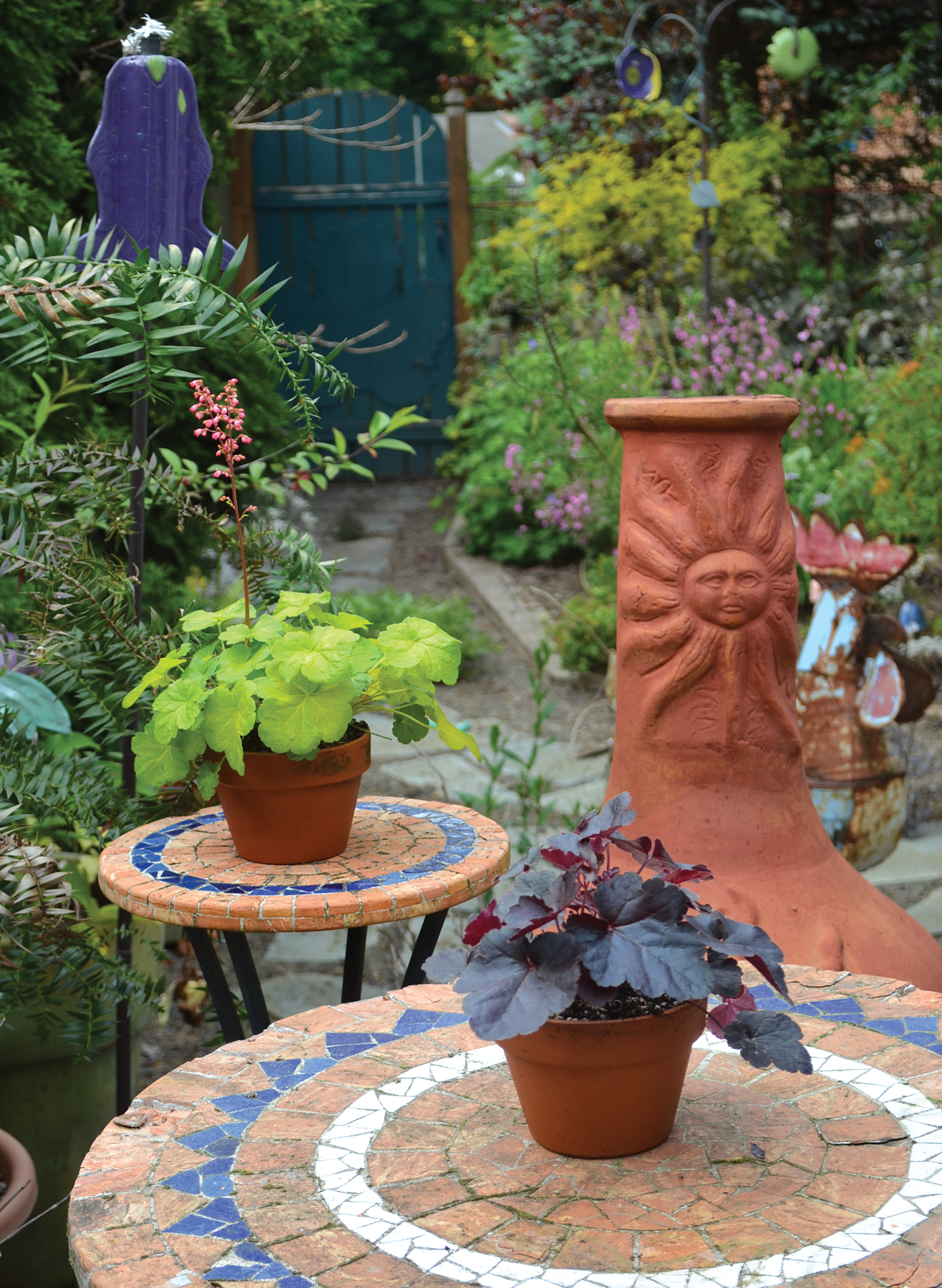 Pots: Coral bells grow beautifully in containers. Just make sure there is a hole in the bottom where the excess water can drain from. Transplant into the landscape in early fall if you’d like them to come back again next year. If you garden in zones 6b or warmer, they can be overwintered in containers.