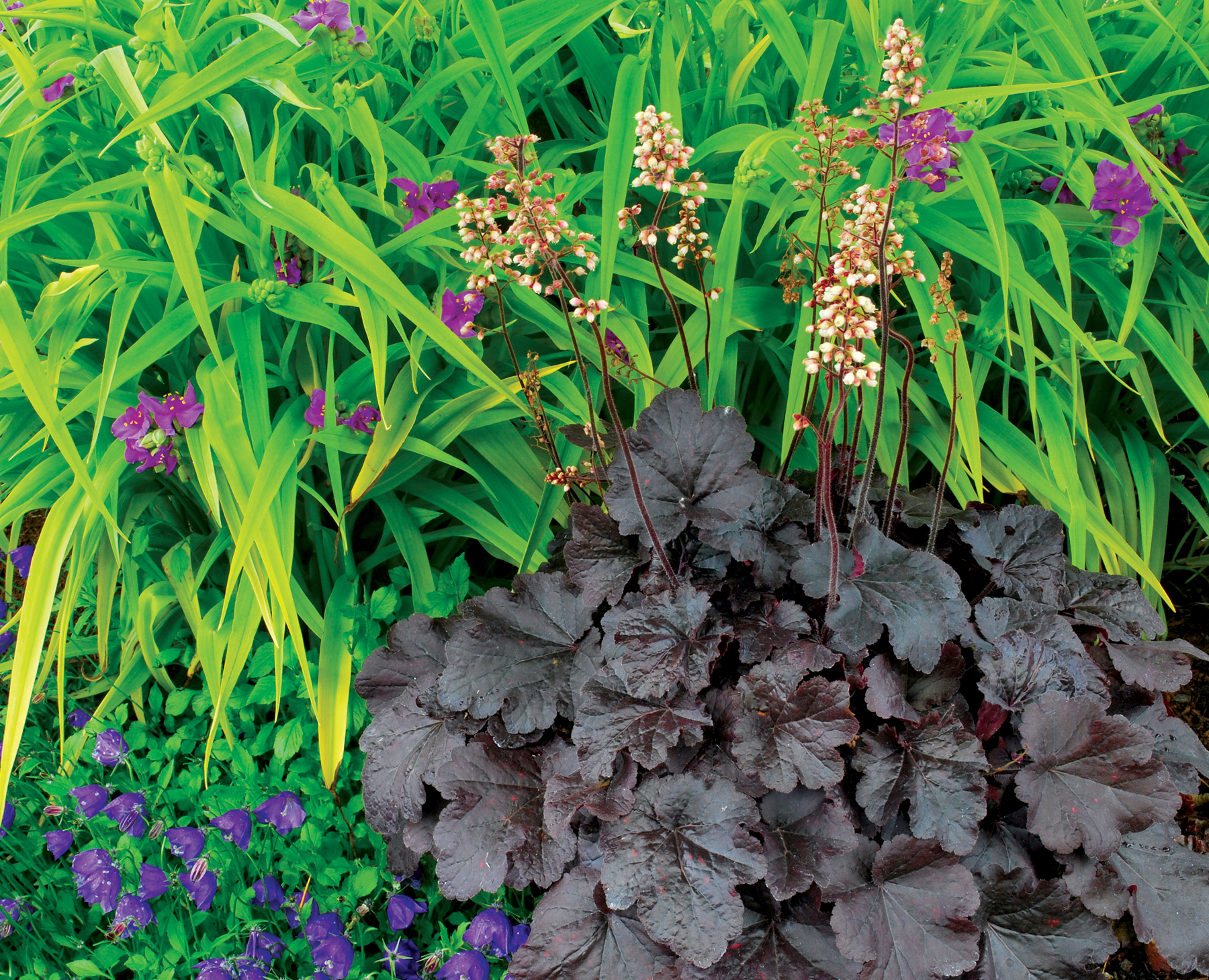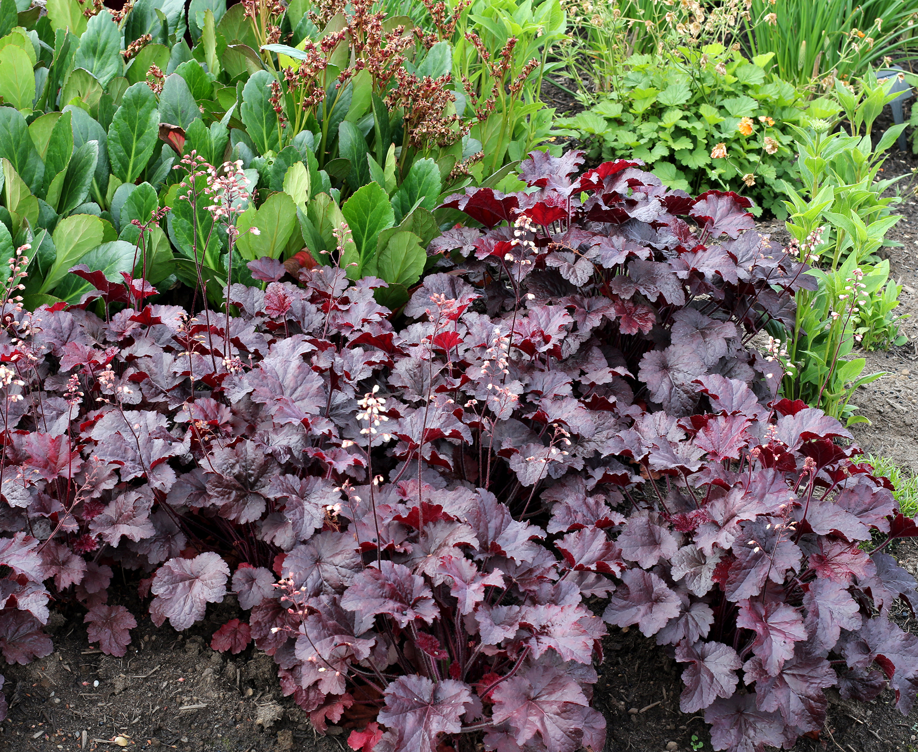 Heuchera goes well with many other perennials, trees and shrubs.