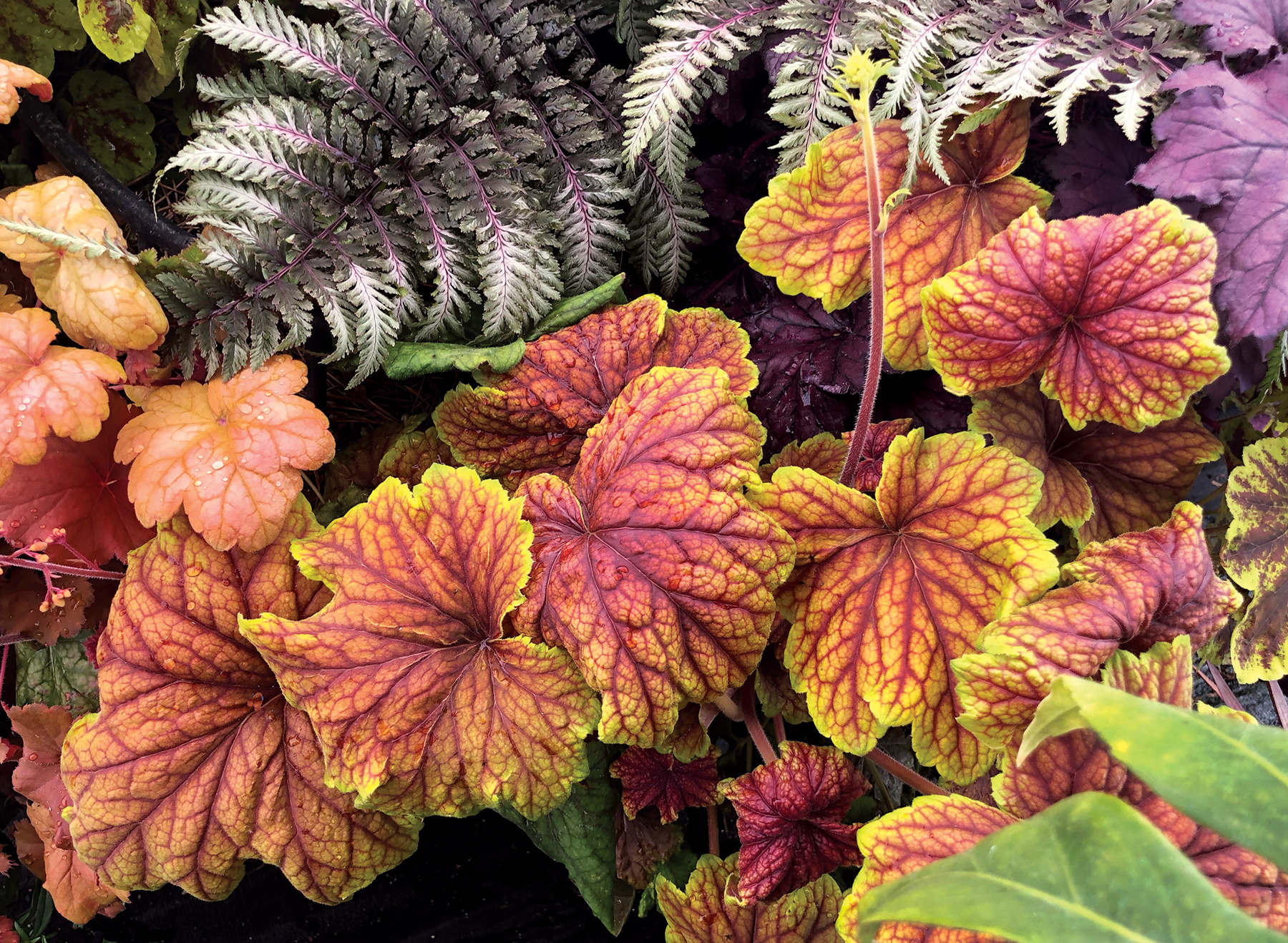• Foliage comes in nearly every color imaginable, from silver to nearly black. Leaves are patterned, ruffled, wavy or smooth.